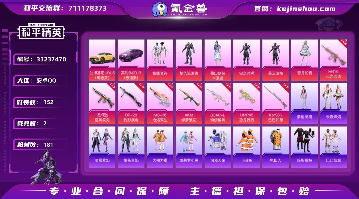 【954649】身法号-地铁马上满天赋-M4心之恋语6级/小丑鱼/浪漫天命/老六服/红眼罩/狂沙舞者/激萌罗小黑/夏日倾情/小鸟芋圆/许七安/冰公主/智能音符/复仇流浪者/李逍遥/宙之时溯/星云暗核/雪月幻音/汤姆逊怪笑疯兔6级/AK绿萝繁花5级/SCAR锦绣绵绵5级/UMP45恐龙拽拽5级/宾利(紫)/兰博基尼(黄)(6粉装-8粉枪-2载具)没战神框 HP6789-0粉色飞行器-58231热力值-14王牌印记-152套装-181枪皮 【热门品类】:套装-浪漫天命,套装-小丑鱼,套装-龟仙人,套装-暗影哥特 【粉色套装】:粉装-智能音符,角色-复仇流浪者,蜀山剑侠-李逍遥,角色-宙之时溯,角色-星云暗核,粉装-雪月幻音 【粉色枪皮等级】:AKM-绿萝繁花(五级),SCAR-L-锦绣绵绵(五级),M416-心之恋语(六级),UMP45-恐龙拽拽(五级),汤姆逊-怪笑疯兔(六级),Kar98K-巳巳如意(五级),DP-28-豹影疾电(五级),MG-36-沧焰双生(五级) 【粉色载具】:兰博基尼URUS(明艳黄),宾利BATUR(极速紫) 【粉色枪皮】:AKM-绿萝繁花,SCAR-L-锦绣绵绵,M416-心之恋语,UMP45-恐龙拽拽,汤姆逊-怪笑疯兔,Kar98K-巳巳如意,DP-28-豹影疾电,MG-36-沧焰双生 【粉色降落伞】:幻影战神降落伞,恐龙拽拽降落伞,圣堂之誓降落伞,繁龙极客降...