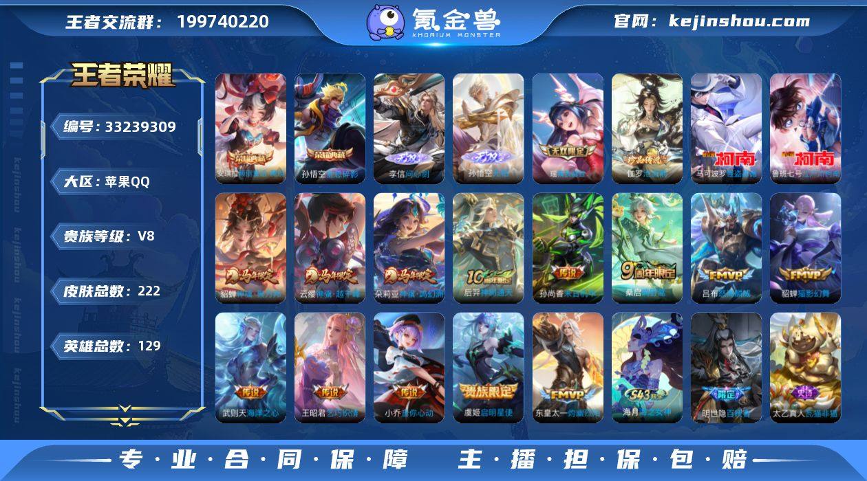 AHC50518 14按键--黛西宝--钱包实名未注销 苹果Q-V8-永恒钻石III段位-129英雄-222皮肤-2典藏皮肤-3无双-3珍品传说-13传说-64史诗 【英雄全皮】:孙权全皮,敖隐全皮,海诺全皮 【荣耀典藏】:孙悟空全息碎影,安琪拉颠倒童话魔镜 【无双皮肤】:李信问心剑,孙悟空无相,瑶真我赫兹 【珍品传说】:伽罗沧流箭,鲁班七号江户川柯南,马可波罗怪盗基德 【传说皮肤】:云缨神骥越千峰,朵莉亚神骥鸣幻洲,貂蝉神骥聚万邦,后羿神树通天,桑启鸣野蒿,东皇太一灼幽烈阳,吕布怒海麟威,王昭君乞巧织情,小乔音你心动,虞姬启明星使,貂蝉猫影幻舞,孙尚香末日机甲,武则天海洋之心 【限定皮肤】:虞姬夏日便利店,狄仁杰阴阳师,赵云皇家上将,赵云百木心枪,妲己热情桑巴,钟无艳超时空战士,扁鹊奇幻香踪,白起夜都怪侠,芈月幻夜卜梦,元歌无心,夏侯惇匿光决锋者,甄姬落雪兰心,狄仁杰魔术师,达摩沙漠行僧,项羽海滩派对,老夫子醍醐杖,王昭君午后时光,兰陵王金庭之子,李元芳云中旅人,虞姬启明星使,杨戬潮玩骑兵,干将莫邪真爱魔法,鬼谷子原初探秘者,鬼谷子五谷丰年,弈星混沌棋,梦奇顽趣,沈梦溪大漠名商,明世隐疑决卦,明世隐吟游魔法,裴擒虎擒涛扼浪,...