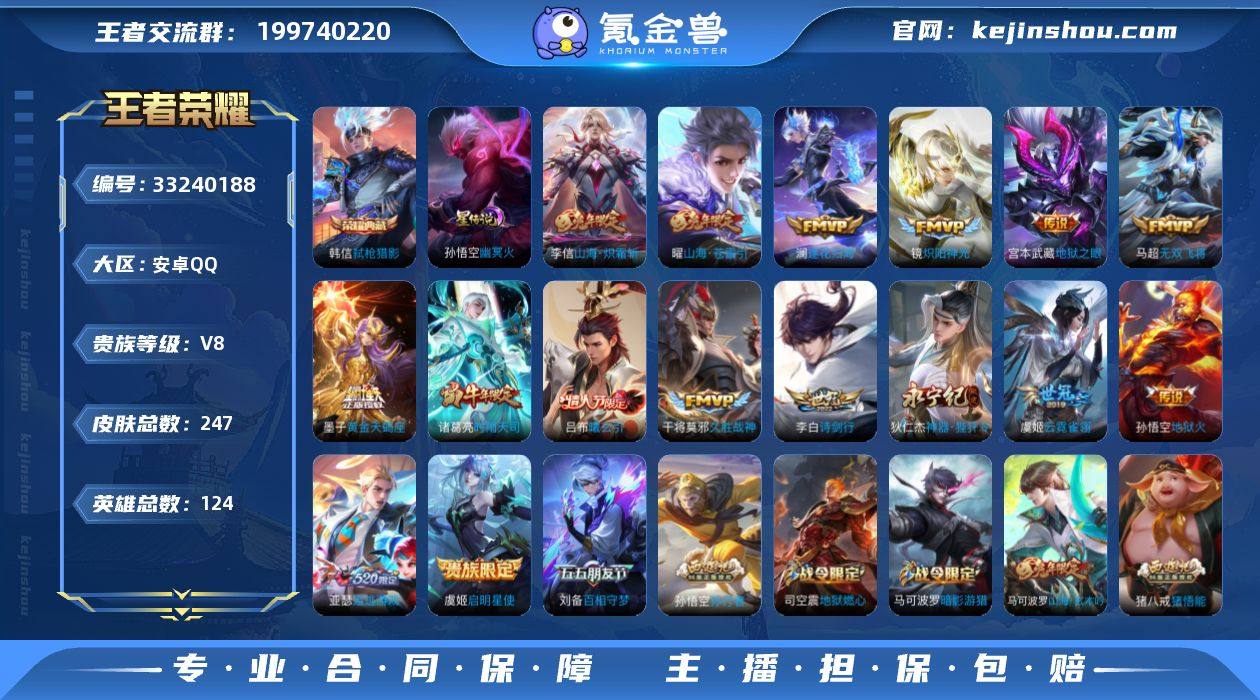 AHC60120,,1星元,,,安卓Q-V8-秩序白银II段位-124英雄-247皮肤-1典藏皮肤-16传说-58史诗 【英雄全皮】:盾山全皮 【荣耀典藏】:韩信弑枪猎影 【传说皮肤】:墨子黄金天蝎座,吕布曦玄引,澜逐花归海,亚瑟追逃游戏,曜山海苍雷引,李信山海炽霜斩,李白诗剑行,狄仁杰神器狴犴令,马超无双飞将,诸葛亮时雨天司,镜炽阳神光,虞姬启明星使,干将莫邪久胜战神,虞姬云霓雀翎,宫本武藏地狱之眼,孙悟空地狱火 【限定皮肤】:姜子牙天穹之誓,狄仁杰阴阳师,赵云皇家上将,墨子神迹守卫,孙尚香蔷薇恋人,鲁班七号狮舞东方,钟无艳超时空战士,扁鹊奇幻香踪,吕布猎兽之王,周瑜赤莲之焰,元歌无心,夏侯惇朔风刀,甄姬落雪兰心,马可波罗暗影游猎,马可波罗山海玄木吟,狄仁杰魔术师,狄仁杰万华元夜,狄仁杰神器狴犴令,达摩沙漠行僧,项羽海滩派对,老夫子醍醐杖,关羽百相守梦,程咬金演武夺筹,兰陵王驯魔猎人,亚瑟追逃游戏,孙悟空孙行者,牛魔御旌,后羿如梦令,刘备百相守梦,李元芳云中旅人,虞姬启明星使,钟馗神迹守卫,钟馗驱傩正仪,杨戬潮玩骑兵,鬼谷子原初探秘者,鬼谷子五谷丰年,诸葛亮时雨天司,苏烈千军破阵,百里玄策原初追逐者,弈星混沌棋,沈梦溪...