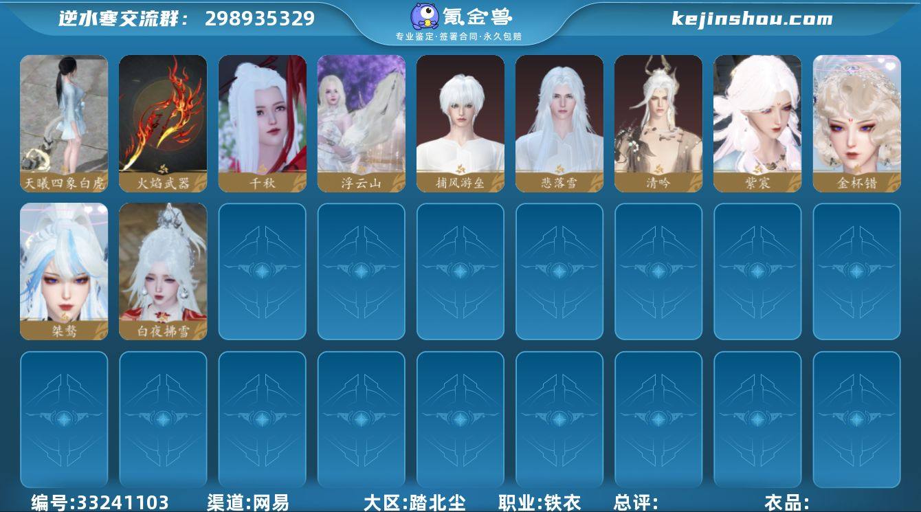 【区服】 瑶光听雪 【充值称号】 把酒临风 【已用天赏石】 13 【天霓染数量】 1 【天霓染】 露染菡萏*1 【天赏发型】 赤练霜, 捕风游垒, 悲落雪, 清吟, 桀骜, 紫宸, 金杯错, 浮云山, 千秋 【天赏外观】 火焰武器, 天曦四象·白虎 【副本外观】 白夜拂雪*1 【配饰】 披千霜 【商城外观】 雪庭问宋, 狂纵驰野, 末日狂歌, 墨喧雪绒, 野径风途, 砂城宝阙, 居居勇者, 夜锋漫迹, 甜宙漫游, 宝禄纳财, 夜雨倾澜, 如约鹅至, 焦糖暖绒, 逸夏浮澜, 羽信絮梦, 司玄镇天, 血宴风华, 神戬天威, 朝歌旧梦, 玲珑灼火, 诗剑纵歌, 千星咏叹, 鸿福昭运, 跃动心芒, 羲皇定世, 朔雪从风, 琼林萧瑟, 闻鹤九皋, 灵语星彩, 晴蓝逸思, 晴岸涛吟, 玄喵夜行, 鳞骨逢幽, 贪狼摄星, 紫微御宵, 衣香鬓影, 金祷颂晖, 金粉绮梦, 烽火浮生, 赤狐魅语, 天纵恒尊, 白灵幻尘, 舞乐浮烬, 墨隐千秋, 枫华九霄, 御宇临渊, 风啸寒鸣, 龙城飞沙 【祥瑞坐骑】 纵风甲车·玄, 星河转·赤夜, 骋风叱焰, 呆宝, 墨流云·玄色, 布丁, 墨流云·朱红, 墨流云·靛青, 风行·江湖景, 奔虹赤, 风行·世间情, 风行·万灯明, 云螭·封冰怀雪, 龙衔瑞焰, 丹锦喜狮, 风行·谦谦有礼, 金冠鼠鼠, 粉黛娇, 幻琉晶, 狂霸天, 星河转·银昼, 伯力, 咩郎,...