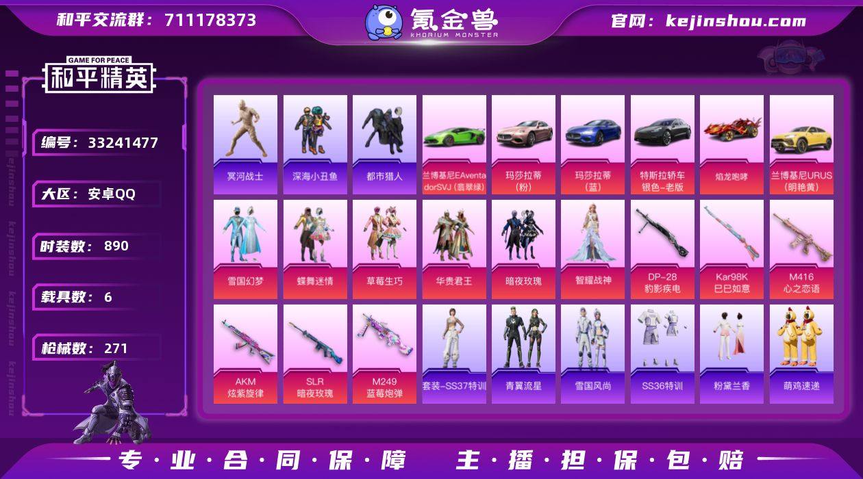 AL697942 【极品身法素材号好看主页无敌战神26印记 木乃伊雪国 6车优质套装:套装-都市猎人,套装-深海小丑鱼,套装-小丑鱼,套装-冥河战士,粉装-雪国幻梦,粉装-华贵君王,粉装-蝶舞迷情,粉装-草莓生巧,粉装-暗夜玫瑰,套装-龟仙人,角色-智耀战神 优质武器皮肤:G36C-星穹咏叹调,AKM-炫紫旋律,SCAR-L-黄金龙骨,M416-心之恋语,M416-仓鼠灰灰,Kar98K-巳巳如意,SLR-暗夜玫瑰,Mk14-福马献瑞,M249-蓝莓炮弹,DP-28-豹影疾电稀有载具:僚机-空客H135蔚蓝之翼,焰龙咆哮,兰博基尼AventadorSVJ(翡翠绿),玛莎拉蒂Ghibli(粉),玛莎拉蒂Ghibli(蓝),特斯拉Model3(冷光银),兰博基尼URUS(明】 热力值92046 枪皮数量271 粉装数6 套装数量226 时装数890 载具数6 战备数179 其他武器皮肤256 头盔102 动作58 伙伴5 其他武器皮肤:G36C-暗夜玫瑰,G36C-时空追击者,G36C-星穹咏叹调,G36C-懵萌河马,G36C-乌木金纹,G36C-青丘仙客,G36C-金风玉露,AKM-缤纷海域,AKM-春暖花开,AKM-乌木金纹,AKM-天启纪元,AKM-彩虹符号,AKM-虎虎生威,AKM-霓虹街区,AKM-涂鸦街区,AKM-破晓战魂,AKM-影袭,AKM-玉龙,AKM-龙的传人,AKM-霓彩脉冲,ACE32-冰晶雪宝,M16A4-红色方程...