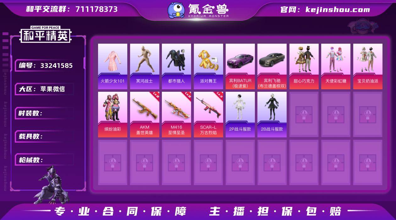 编号63448 果V可改,老101,木乃伊,金鞋子,巧克力,都市,2B,猪妹,狂沙,至情至圣,盖世,万古,甜心AK,5特3计数2淘汰,2载具兔子僚机