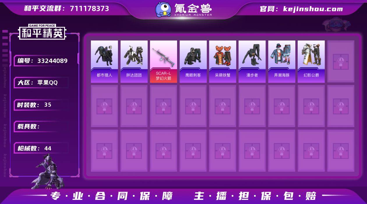 【948489】DYH18127【4特效3飞行器 都市猎人 胖达团团】苹果手Q-4特效枪-35套装-44枪皮-2王牌印记-不朽星钻Ⅲ-14416热力值【4特效枪】SCAR-L-梦幻火箭[6级],Mk14-福马献瑞[4级],AKS-74U-森灵之息[5级],燃烧瓶-天降桃花[4级]【3稀有】胖达团团,都市猎人,AKM-缤纷海域【6飞行器】梦幻火箭飞行器,狂鲨锋刃飞行器,踏卷乘风飞行器,登顶巅峰飞行器,马上有福飞行器,炫彩糖果飞行器【1头盔】梦幻火箭头盔【1背包】梦幻火箭背包【72其它衣服和枪皮】完美偶像,魅力单车,画境星梦,雨过天青,福马献瑞,海岛探路者,街头风暴,书海巡游,青翼流星,顽皮橙,酒红色名流,鹰眼刺客,呆萌铁蟹,琴音绮想,SS36特训,红釉青花,马上有钱,长空猛禽,黄色运动,疯狂小兔子,SS37特训,狙击之神,漫步者,猛禽,幻影公爵,雪国风尚,弄潮海豚,阳光菠萝,暖暖麦兜,角色-曹焱兵,SS35特训,冰冻风暴,阳光火鸡,蜜獾-启元战纹,UZI-影袭,S686-生命誓言,ACE32-画境星梦,M249-冰晶雪宝,MG3-幻世战舞者,汤姆逊-天降萌叽,GROZA-福马献瑞,MP5K-画境星梦,平底锅-光之冒险,Vector-荒原烈焰,燃烧瓶-福马献瑞,20-H-狂鲨锋刃,M24-影袭,破片手榴弹-爆破雪人,M1加兰德-画境星梦,平底锅-画境星梦,GROZA-影袭,SCAR-L-炫彩节奏,撬棍-冰晶雪宝,沙...