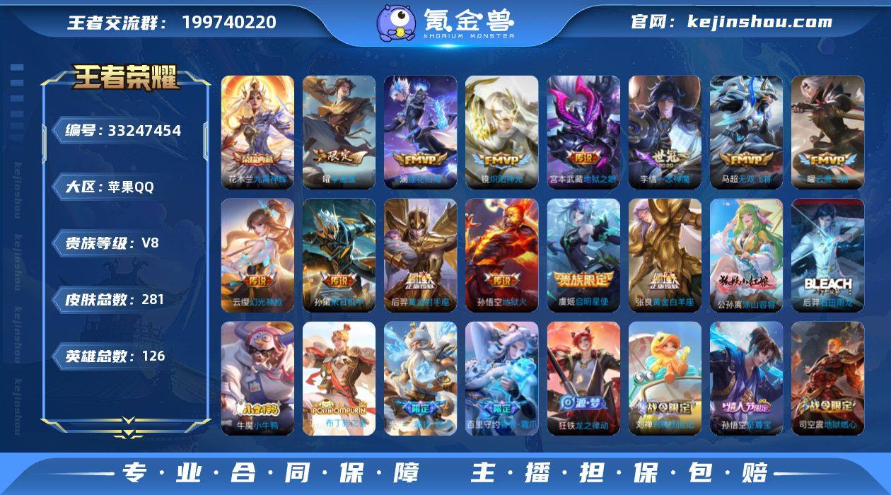 【Hwz1165】【精品男号】:苹果Q-V8-可二次-3市标-15县标-126英雄-281皮肤-1典藏皮肤-13传说-81史诗(九霄神辉、无双飞将、李逍遥)470朵花 【荣耀典藏】:花木兰九霄神辉 【传说皮肤】:云缨幻光神枪,澜逐花归海,马超无双飞将,孙策末日机甲,曜李逍遥 ,镜炽阳神光,虞姬启明星使,曜云鹰飞将,李信一念神魔,张良黄金白羊座,后羿黄金射手座,宫本武藏地狱之眼,孙悟空地狱火 【限定皮肤】:大乔绒语心约,姜子牙天穹之誓,狄仁杰阴阳师,赵云皇家上将,赵云引擎之心,墨子神迹守卫,孙尚香蔷薇恋人,鲁班七号狮舞东方,阿轲迷踪丽影,吕布御风骁将,周瑜赤莲之焰,元歌云间偶戏,夏侯惇朔风刀,马可波罗暗影游猎,狄仁杰魔术师,狄仁杰万华元夜,项羽海滩派对,老夫子醍醐杖,老夫子航海奇遇记,关羽冰锋战神,貂蝉逐梦之音,程咬金演武夺筹,刘邦夺宝奇兵,韩信逐梦之影,韩信飞衡,兰陵王驯魔猎人,亚瑟潮玩骑士王,孙悟空至尊宝,孙悟空大圣娶亲,牛魔御旌,李元芳银河之约,虞姬启明星使,钟馗神迹守卫,钟馗驱傩正仪,雅典娜单词大作战,蔡文姬繁星吟游,鬼谷子原初探秘者,苏烈千军破阵,弈星混沌棋,沈梦溪星空之诺,沈梦溪大漠名商,明世隐疑决卦,裴擒虎李小龙...