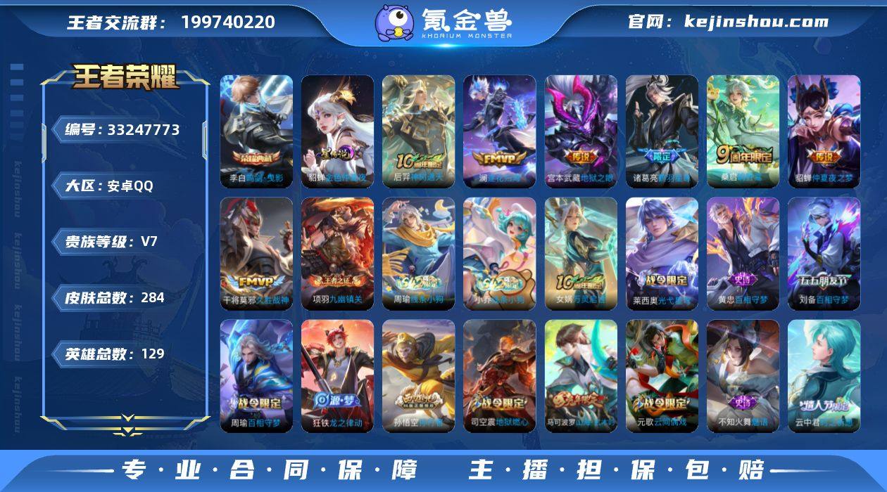 【WZ182260】安卓Q-V7-至尊星耀V段位-129英雄-284皮肤-1典藏皮肤-7传说-89史诗【英雄全皮】:孙权全皮,敖隐全皮,影全皮【荣耀典藏】:李白鸣剑曳影【传说皮肤】:后羿神树通天,桑启鸣野蒿,澜逐花归海,诸葛亮鹤羽星尊,干将莫邪久胜战神,貂蝉仲夏夜之梦,宫本武藏地狱之眼【限定皮肤】:姜子牙天穹之誓,杨戬破阵退雄兵,狄仁杰阴阳师,赵云皇家上将,墨子神迹守卫,孙尚香蔷薇恋人,高渐离玩趣恶龙,芈月幻夜卜梦,元歌云间偶戏,元歌无心,马可波罗山海玄木吟,狄仁杰魔术师,狄仁杰万华元夜,达摩星际陆战队,达摩沙漠行僧,项羽海滩派对,老夫子醍醐杖,老夫子航海奇遇记,程咬金演武夺筹,兰陵王金庭之子,孙悟空孙行者,刘备百相守梦,李元芳云中旅人,钟馗驱傩正仪,雅典娜黎明之约,鬼谷子原初探秘者,鬼谷子五谷丰年,诸葛亮鹤羽星尊,黄忠火炮绅士,苏烈千军破阵,百里玄策原初追逐者,梦奇顽趣,沈梦溪大漠名商,明世隐疑决卦,裴擒虎李小龙,裴擒虎擒涛扼浪,云中君纤云弄巧,云中君时之祈愿,上官婉儿梁祝,嫦娥拒霜思,嫦娥暖冬兔眠,西施玲珑珍味,鲁班大师探海日志,桑启海盐诗旅,暃星界游侠,戈娅驭风魔法,艾琳流音漫舞,司空震地狱燃心,阿古朵江河...