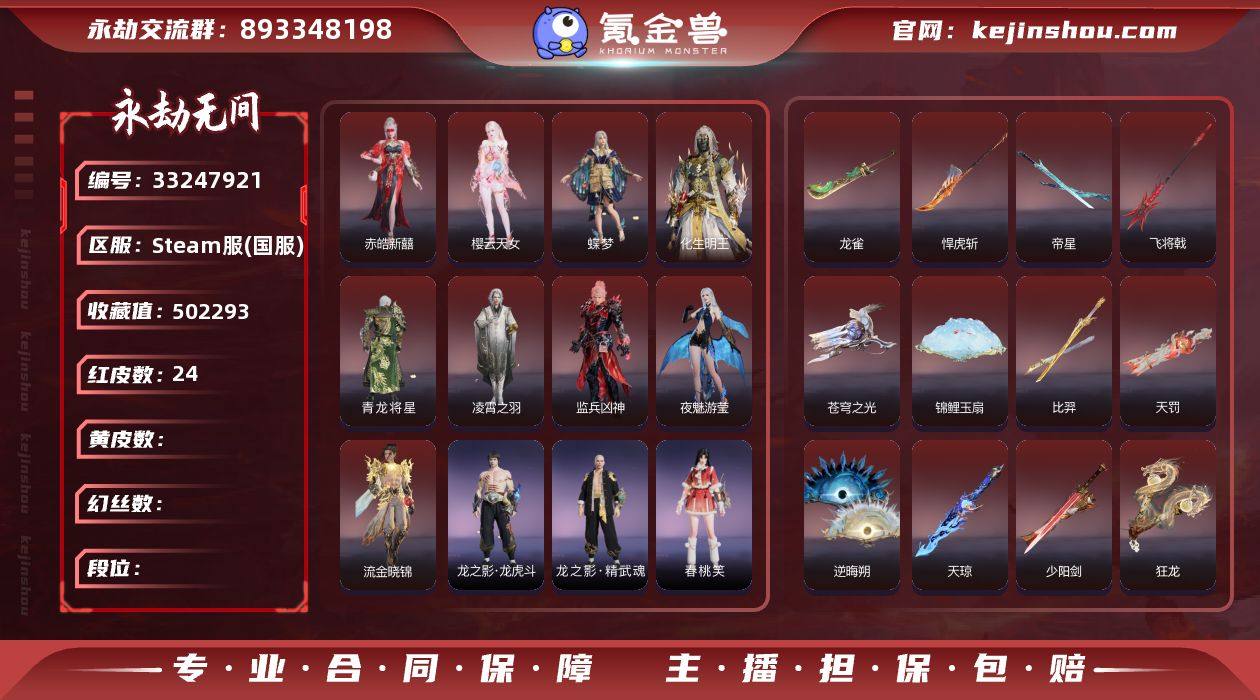 YJJ2248/steam/可换绑/等级321/s20三人黄金1/28红694金收藏值502293/初樱绮梦/人偶之梦/赤皓新囍/墨离/化生明王/新倩女幽魂·长天藏锦/樱云天女/蝶梦/青龙将星/凌霄之羽/监兵凶神/夜魅游莹/流金晓锦/天罚/苍穹之光/毕方/少阳剑/太玄之刃/帝星/比羿/龙雀/狼主/悍虎斩/飞将戟/天琼/锦鲤玉扇/逆晦朔/狂龙/2674·原型/星辉环月/西行劫·三尖两刃刀/2674·初代机/珥冰/神乌造像/观山海·春木/龙之影·龙虎斗/龙之影·精武魂/洛天依·星轨引航/春桃笑/御宅罗梦(白丝)/凯蒂猫·魔杖/彩俑娃娃/剪纸·彩刀/龙之道·无拘/龙之影·过江龙/西行劫·杨戬/西行劫·神君印/夏日派对·仲夏霜华/拳皇·勾玉/千秋匠心·凶虎/夏日派对·盛夏白阳/封神录·赤莲/夜蔷薇/夏日派对·半夏晚风/夏日派对·逐浪砂阳/夏日派对·极光夏夜/龙之道·灵心/幻丝10808/已绑定手游