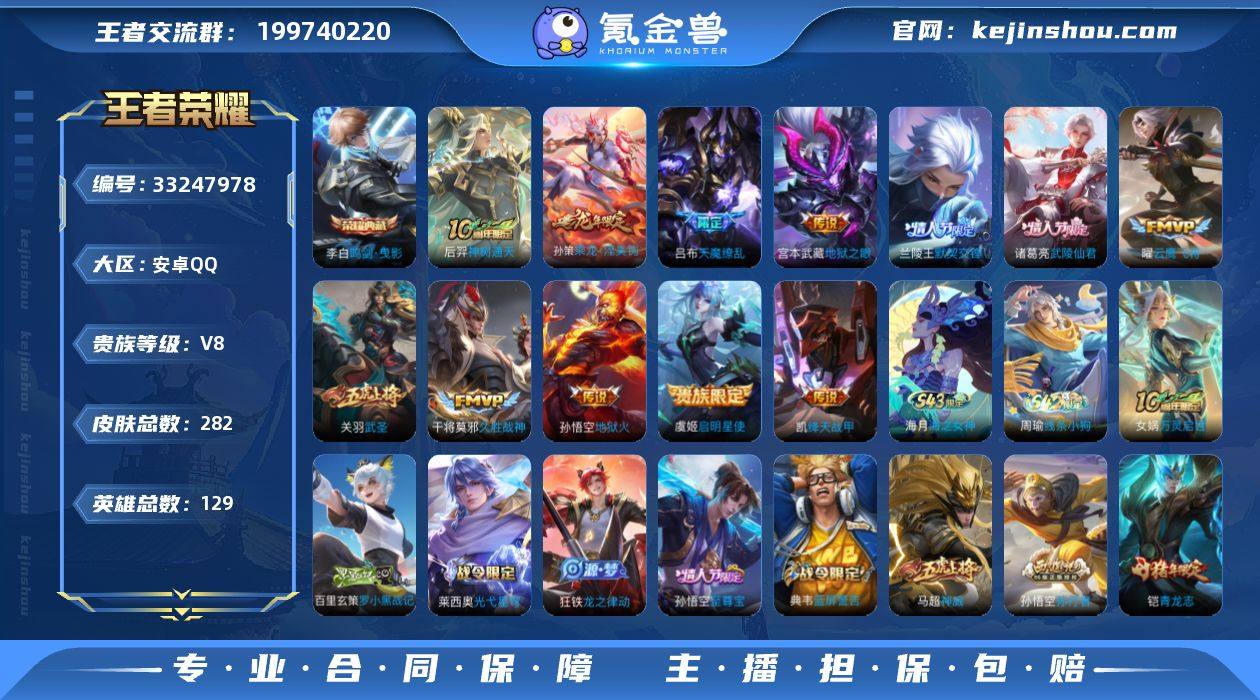 【Hwz1170】【特价出售】:安卓Q-V8-可二次-6市标-13县标-129英雄-282皮肤-1典藏皮肤-12传说-82史诗(鸣剑曳影、乘龙淬吴钩、武圣、武陵仙君、天魔缭乱)966朵花 【荣耀典藏】:李白鸣剑曳影 【传说皮肤】:后羿神树通天,孙策乘龙淬吴钩,兰陵王默契交锋,铠绛天战甲,虞姬启明星使,关羽武圣,曜云鹰飞将,干将莫邪久胜战神,诸葛亮武陵仙君,宫本武藏地狱之眼,孙悟空地狱火,吕布天魔缭乱 【限定皮肤】:白起狰,狄仁杰阴阳师,赵云皇家上将,墨子神迹守卫,嬴政优雅恋人,嬴政白昼王子,孙尚香蔷薇恋人,鲁班七号狮舞东方,庄周高山流水,高渐离玩趣恶龙,芈月重明,芈月幻夜卜梦,吕布天魔缭乱,吕布猎兽之王,元歌云间偶戏,夏侯惇朔风刀,曹操烛龙,典韦穷奇,典韦蓝屏警告,狄仁杰魔术师,狄仁杰万华元夜,达摩星际陆战队,达摩沙漠行僧,项羽海滩派对,老夫子醍醐杖,老夫子航海奇遇记,关羽冰锋战神,关羽武圣,程咬金演武夺筹,韩信逐梦之影,韩信飞衡,兰陵王默契交锋,兰陵王金庭之子,亚瑟潮玩骑士王,孙悟空美猴王,孙悟空至尊宝,孙悟空大圣娶亲,孙悟空孙行者,牛魔御旌,后羿圣弓游侠,李元芳银河之约,李元芳云中旅人,虞姬启明星使,钟馗神迹守卫,钟馗...
