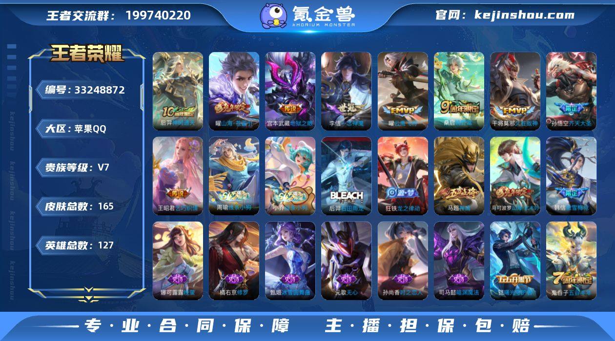 苹果Q-V7-尊贵铂金I段位-127英雄-165皮肤-12传说-45史诗【英雄全皮】:敖隐全皮【传说皮肤】:云缨神骥越千峰,貂蝉神骥聚万邦,马超神骥逐星野,后羿神树通天,桑启鸣野蒿,孙悟空齐天大圣,曜山海苍雷引,王昭君乞巧织情,曜云鹰飞将,李信一念神魔,干将莫邪久胜战神,宫本武藏地狱之眼【限定皮肤】:姜子牙天穹之誓,杨戬破阵退雄兵,狄仁杰阴阳师,赵云皇家上将,孙尚香蔷薇恋人,元歌无心,马可波罗山海玄木吟,狄仁杰魔术师,达摩沙漠行僧,项羽海滩派对,韩信傲雪梅枪,兰陵王金庭之子,孙悟空齐天大圣,李元芳云中旅人,鬼谷子原初探秘者,鬼谷子五谷丰年,苏烈千军破阵,沈梦溪大漠名商,裴擒虎擒涛扼浪,云中君纤云弄巧,嫦娥拒霜思,曜山海苍雷引,鲁班大师探海日志,桑启海盐诗旅,阿古朵江河有灵,张良古海寻踪,蒙犽百解令,鬼谷子天穹祈灯,刘邦剑破天穹,程咬金群星魔术团,镜青焰无极,项羽苍威无极,刘备异域游侠,周瑜熔金海岸【年限皮肤】:曜山海苍雷引,马可波罗山海玄木吟【赛季限定】:鬼谷子原初探秘者,苏烈千军破阵,达摩沙漠行僧,兰陵王金庭之子,沈梦溪大漠名商,李元芳云中旅人,桑启海盐诗旅,裴擒虎擒涛扼浪,鲁班大师探海日志,张良古海寻...