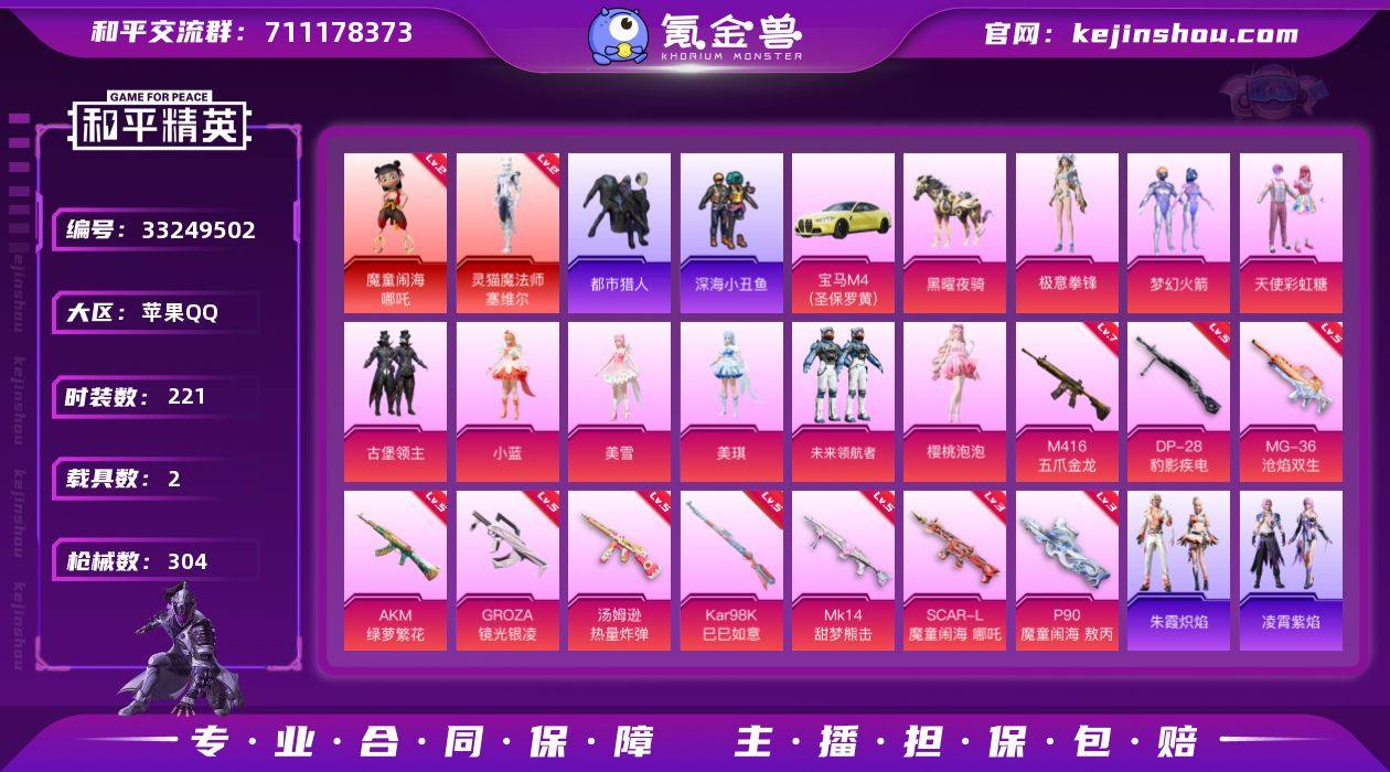 苹果 手Q-无敌战神框-2神装-9粉装-13特效枪-2载具-6粉色飞行器-98117热力值-28王牌印记-221套装-304枪皮【红色神装等级】:魔童闹海-哪吒(二级),灵猫魔法师-塞维尔(二级)【红色角色神装】:魔童闹海-哪吒,灵猫魔法师-塞维尔【热门品类】:粉装-梦幻火箭,套装-浪漫天命,套装-都市猎人,套装-深海小丑鱼,套装-黄金大亨,套装-龟仙人,套装-暗影哥特,套装-粉红小猪【粉色套装】:粉装-天使彩虹糖,粉装-梦幻火箭,粉装-古堡领主,角色-小蓝,角色-美雪,角色-美琪,粉装-未来领航者,角色-樱桃泡泡,粉装-极意拳锋【粉色枪皮等级】:AKM-绿萝繁花(五级),SCAR-L-魔童闹海 哪吒(三级),M416-五爪金龙(七级),GROZA-镜光银凌(五级),ACE32-萌骑漫游(四级),汤姆逊-热量炸弹(五级),AKS-74U-森灵之息(四级),P90-魔童闹海 敖丙(三级),Kar98K-巳巳如意(五级),Mk14-甜梦熊击(五级),Mk14-福马献瑞(五级),DP-28-豹影疾电(五级),MG-36-沧焰双生(五级)【粉色载具】:宝马M4(圣保罗黄),僚机-冰龙团团,黑曜夜骑【粉色枪皮】:AKM-绿萝繁花,SCAR-L-魔童闹海 哪吒,M416-五爪金龙,GROZA-镜光银凌,ACE32-萌骑漫游,汤姆逊-热量炸弹,AKS-74U-森灵之息,P90-魔童闹海 敖丙,Ka...