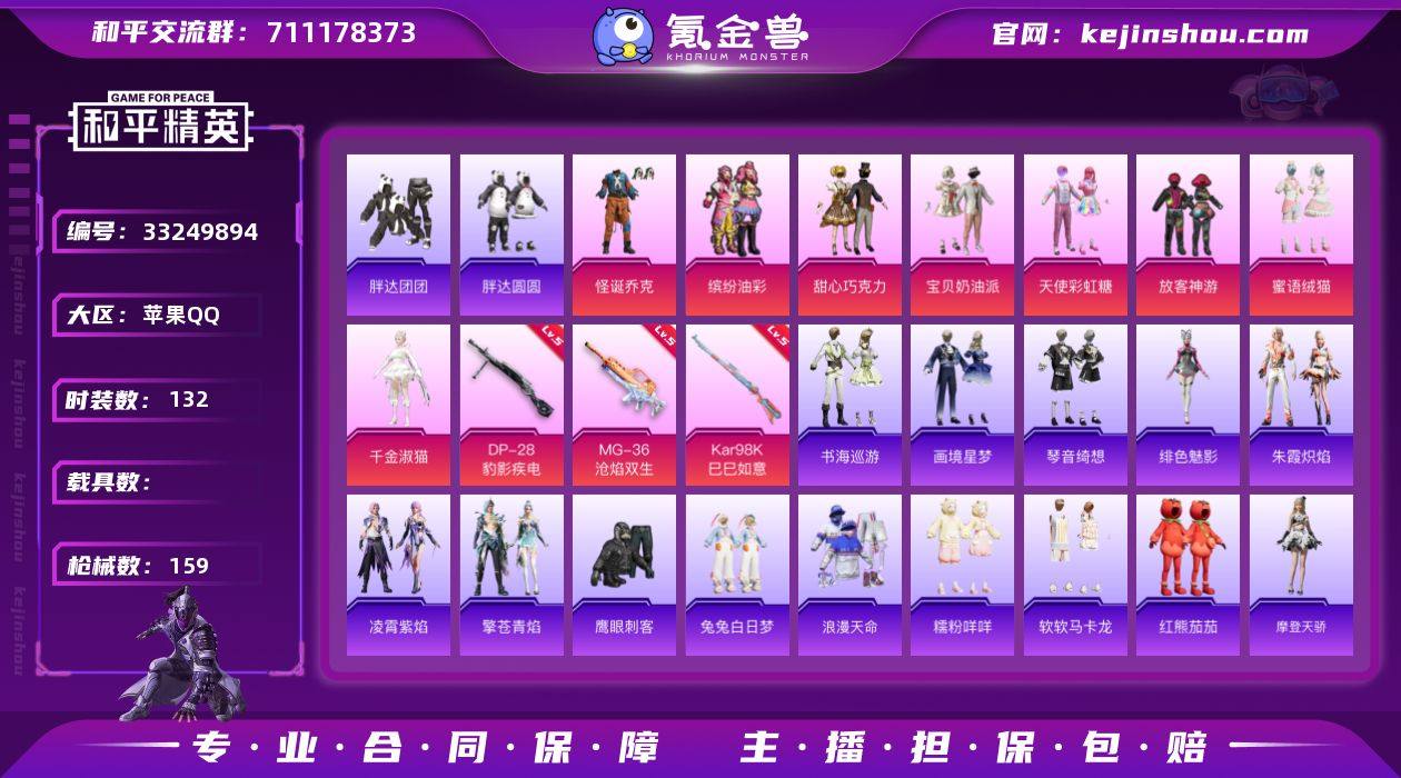 【AZH3569】苹果 手Q【怪诞乔克巧克力三姐妹猪脸 胖达红熊茄茄软软马卡龙糯粉咩咩 胖达头盔】8粉装-8特效枪-0载具-2粉色飞行器-47135热力值-7王牌印记-132套装-159枪皮 【热门品类】:粉装-怪诞乔克,粉装-缤纷油彩,套装-浪漫天命,套装-胖达团团,套装-胖达圆圆,套装-糯粉咩咩,套装-软软马卡龙,套装-红熊茄茄 【粉色套装】:粉装-怪诞乔克,粉装-甜心巧克力,粉装-宝贝奶油派,粉装-天使彩虹糖,粉装-缤纷油彩,粉装-放客神游,粉装-蜜语绒猫,角色-千金淑猫 【粉色枪皮等级】:ACE32-萌骑漫游(三级),UMP45-萌骑冒险(四级),AKS-74U-森灵之息(五级),Kar98K-巳巳如意(五级),Mk14-福马献瑞(四级),AA12-G-萌骑幻想(五级),DP-28-豹影疾电(五级),MG-36-沧焰双生(五级) 【粉色枪皮】:ACE32-萌骑漫游,UMP45-萌骑冒险,AKS-74U-森灵之息,Kar98K-巳巳如意,Mk14-福马献瑞,AA12-G-萌骑幻想,DP-28-豹影疾电,MG-36-沧焰双生 【粉色飞行器】:炫彩糖果飞行器,幻海仙踪飞行器 【粉色降落伞】:甜心宝贝降落伞,蜜语绒猫降落伞,临安公主降落伞,星月云朵降落伞,星穹咏叹调降落伞,幻彩电音降落伞,荧海星豚降落伞,喜羊羊与灰太狼降落伞,极意拳锋降落伞,炫彩糖果降落伞...