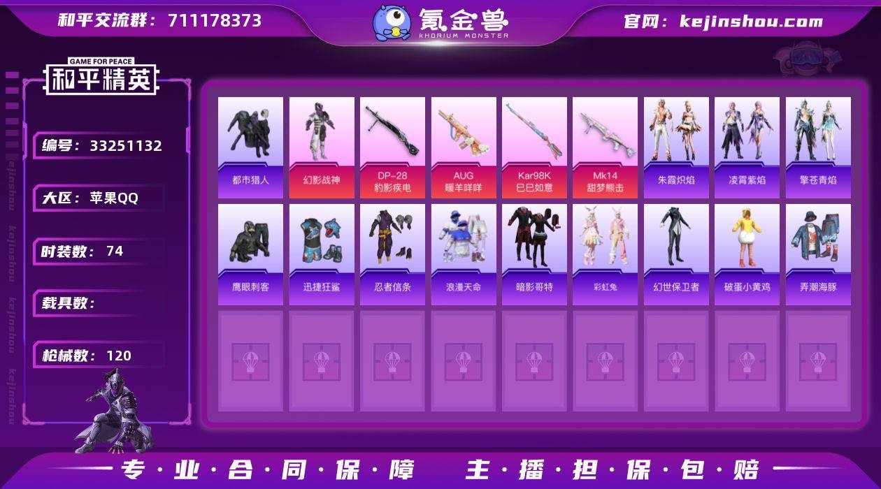 【948345】crhp42+【小雾神同款素材身法可二次实名 都市猎人 红眼罩 浪漫天命 深海小丑鱼 1粉6特效枪】苹果手Q-1粉装-6特效枪-74套装-120枪皮-3王牌印记-不朽星钻Ⅴ-28423热力值【1粉装】幻影战神【6特效枪】Kar98K-巳巳如意[5级],Mk14-甜梦熊击[5级],AA12-G-萌骑幻想[5级],AUG-暖羊咩咩[5级],DP-28-豹影疾电[5级],Mk14-福马献瑞[5级]【5稀有】都市猎人,深海小丑鱼,暗影哥特,浪漫天命,忍者信条【8飞行器】鸡智如我飞行器,炫彩糖果飞行器,云朵驼驼飞行器,顶峰精英尾迹,异域银装飞行器,狂鲨锋刃飞行器,马上有福飞行器,极意拳锋飞行器【1头盔】幻影战神头盔【1背包】幻影战神背包【182其它衣服和枪皮】彩虹兔,SS33特训,大橘大利,角色-霜刃之御,弄潮海豚,擎苍青焰,青翼流星,香桃花海,绯格组合,红釉青花,鹤鸣,雪绒豹,青涩时光,SS37特训,异域银装,战地督导,完美偶像,缤纷果语,画境星梦,雨过天青,巳巳如意,冰冻风暴,玲珑侠影,街头潮人,雪国风尚,旭日情侣,魅力单车,智谋强哥,游乐,SS35特训,阳光火鸡,特战装甲,炫彩糖果,长空猛禽,黑色伏地魔,幻世保卫者,迅捷狂鲨,黄色运动,SS32特训,元气之梦,SS36特训,马上有钱,绮丽涂鸦,薄荷星砂,战术大师,SS34特训,星途旅人,滨海厨神,凌霄紫焰,王牌教...