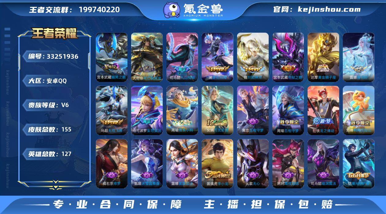 W16081,,可立即换绑无需挂单养号,钱包注销不了,,铭文满级,,传说9,,,星传说1,,按键3,,,夺宝141,,安卓Q-V6-永恒钻石IV段位-126英雄-155皮肤-9传说-38史诗 【英雄全皮】:司马懿全皮 【传说皮肤】:大司命死亡执政官,司马懿九山相柳,澜逐花归海,露娜霜月吟,马可波罗妄想实况,马超无双飞将,镜炽阳神光,达摩黄金狮子座,宫本武藏地狱之眼 【限定皮肤】:狄仁杰阴阳师,赵云皇家上将,元歌无心,马可波罗妄想实况,狄仁杰魔术师,达摩沙漠行僧,项羽海滩派对,李元芳云中旅人,钟馗驱傩正仪,干将莫邪胡桃夹子,苏烈千军破阵,百里玄策原初追逐者,裴擒虎李小龙,裴擒虎擒涛扼浪,西施玲珑珍味,鲁班大师探海日志,桑启海盐诗旅,戈娅驭风魔法,阿古朵江河有灵,张良古海寻踪,鬼谷子天穹祈灯,沈梦溪龙舞盛年,刘邦剑破天穹,程咬金群星魔术团,镜青焰无极,项羽苍威无极,周瑜熔金海岸 【赛季限定】:钟馗驱傩正仪,苏烈千军破阵,达摩沙漠行僧,李元芳云中旅人,桑启海盐诗旅,裴擒虎擒涛扼浪,鲁班大师探海日志,张良古海寻踪,鬼谷子天穹祈灯,刘邦剑破天穹,钟馗虚灵犬护,甄姬逆浪荇歌,亚瑟荣光之誓,百里玄策原初追逐者 【战令限定】:戈娅驭风魔...