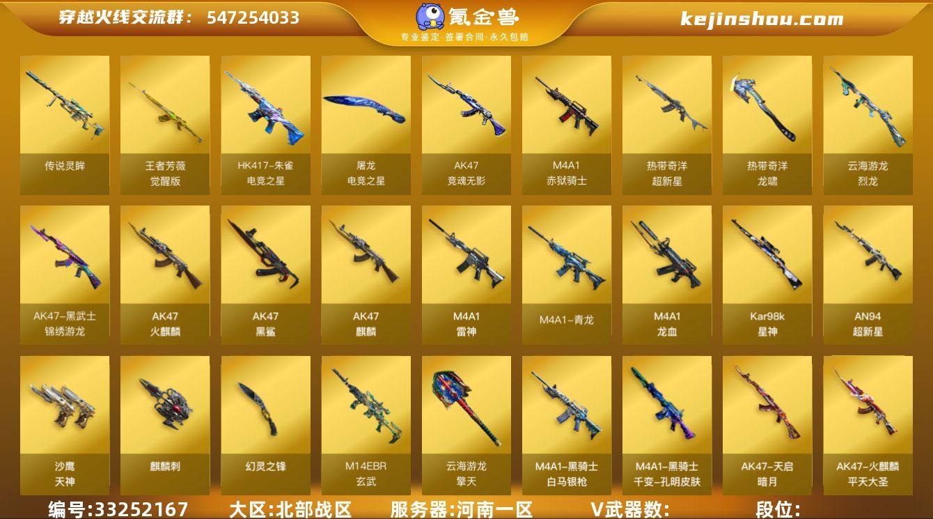 北部战区(河南一区)ys【爆破号】传说【传说灵眸】30v【Kar98k-星神,热带奇洋套装,M14EBR-玄武,M4A1-青龙,朱雀-电竞之星,AK47-火麒麟】1王者【王者芳薇,天启-悦智】9角色【鹰,不败狙神,幻面灵狐,奇洋探员,乔伊教练,蛇隐宗,王者樱-热浪之夏,修道士,云海玲珑】4音效【擎天-云海游龙音效卡,屠龙-电竞之星-竞星悦动音效卡,HK417-朱雀-电竞之星-竞星跃动音效卡,柯尔特-电竞之星-竞星跃动音效卡】 截图展示段位不代表实际段位 如赛季更新等不可抗拒因素发生变化、时限道具不保证所剩时间
