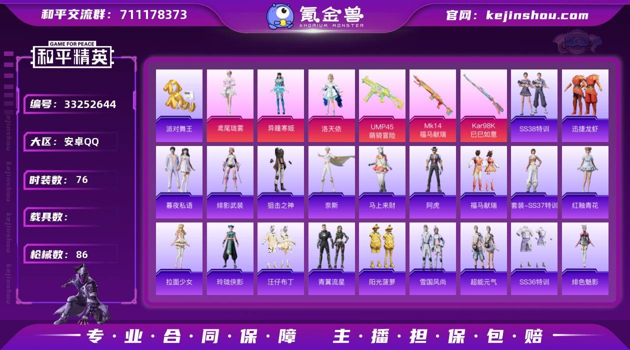 【0载具 3特效枪 3粉装 86枪皮 76套装】金鞋 汤姆猫 菠萝 套装-派对舞王,角色-洛天依,角色-异瞳寒姬,角色-鸢尾珑雾 Kar98K-巳巳如意,Mk14-福马献瑞,UMP45-萌骑冒险,编号:ZPXVQ82