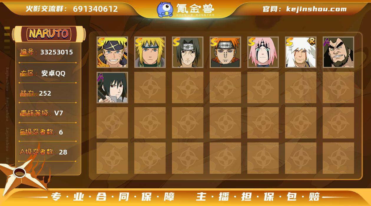 HY22178|【可实名】可二次 252w战力 v7 安卓QQ 3491区 S忍者数:6 A忍者数:28 时装10安卓QQ 3491区 S忍者数:6 A忍者数:28 忍者:漩涡鸣人·宇智波佐助,春野樱「忍界大战」,自来也「舞之豪杰」,宇智波鼬「须佐能乎」,佩恩「天道」,波风水门,小南「神驹佑将」,迈特凯「青春爆炸」,大野木「侠隐江湖」,机械鸣人「初始形态」,神农「羁绊」,宇智波带土「漂泊浪客」,宇智波泉奈,旗木卡卡西「幻之真容」,日向雏田「最终章」,漩涡博人「桃式显现」,日向宁次「忍界大战」,长十郎「六代目水影」,卑留呼「火之意志继承者」,达鲁伊「五代目雷影」,黑土「四代目土影」,飞段「恶灵之影」,宇智波佐助「须佐能乎」,迪达拉「秽土转生」,千代「近松十人卫」,猿飞日斩「火影继承人」,宇智波佐助「万花筒写轮眼」,角都「地怨虞」,飞段「死司凭血」,我爱罗「疾风传」,蝎,干柿鬼鲛,猿飞阿斯玛,迈特凯,二位由木人「奇拉比落风传」,佩恩「畜生道」,日向花火「武当宗师」,雨琉「羁绊」,野原琳「漂泊浪客」,佐井「最终章」,御手洗红豆「新春限定」,马基,犬塚花,奈良鹿丸「最终章」,佩恩「人间道」,天天「峨眉宗师」,萨姆伊「新春限定」,鬼灯满月「忍刀七人众」,贰「火之意志继承者」,日向雏田「忍者之路」,...