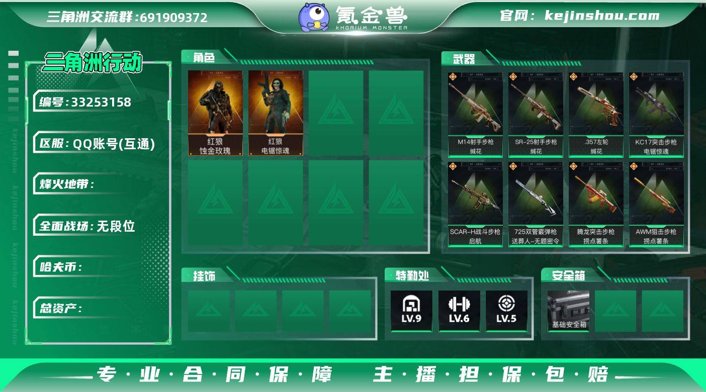 【总资产145.48M 哈弗币171万 干员外观3个 烽火60级 钻石】天才少年 有6套 仓库145M 现金170万 黑鹰 蜂医-送葬人·无题密令,红狼-电锯惊魂,红狼-蚀金玫瑰 M4A1突击步枪-阿米娅,M4A1突击步枪-蚀金玫瑰,AK-12突击步枪-特斯拉线圈,SCAR-H战斗步枪-启航,CAR-15突击步枪-阿米娅,腾龙突击步枪-捞点薯条,KC17突击步枪-电锯惊魂,UZI冲锋枪-特斯拉线圈,SR-3M紧凑突击步枪-特斯拉线圈,勇士冲锋枪-能天使·午夜邮差,725双管霰弹枪-送葬人-无题密令,M14射手步枪-缄花,SR-25射手步枪-缄花,AWM狙击步枪-捞点薯条,.357左轮-缄花,93R-捞点薯条,复合弓-黑·天际线 德 挂凌工作白 df58-71,编号:WPMGG39
