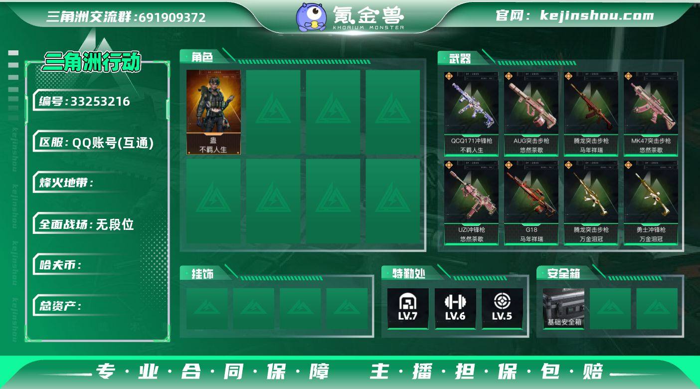 【总资产163.01M 哈弗币9336万 干员外观1个 烽火57级 青铜】仓库163M 现金9335万 黑鹰 蛊-不羁人生 AUG突击步枪-悠然茶歇,AS Val突击步枪-蛇年祥瑞,腾龙突击步枪-马年祥瑞,腾龙突击步枪-万金泪冠,MK47突击步枪-悠然茶歇,UZI冲锋枪-悠然茶歇,勇士冲锋枪-万金泪冠,QCQ171冲锋枪-不羁人生,M14射手步枪-缄花,SR-25射手步枪-缄花,AWM狙击步枪-万金泪冠,.357左轮-缄花,G18-马年祥瑞 德 挂凌工作青 df49-11,编号:WPUMD09