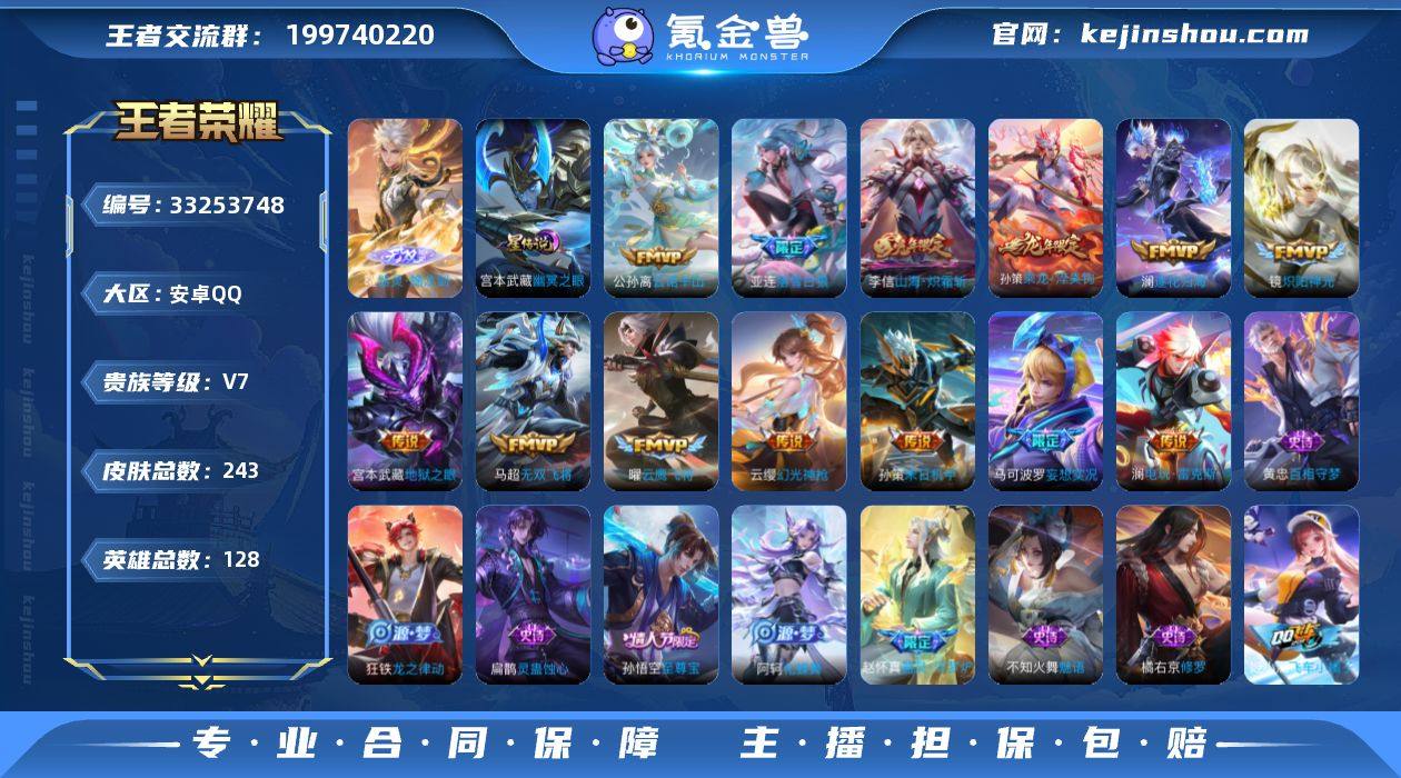 剑·千山共赴·愿照九州拓·落雪白狼·乘龙淬吴钩·逐花归海·山海炽霜斩·寅虎赤拳·无二次包过】w23907-安卓Q-128英雄-243皮肤-14王者印记-150铭文-贵族积分4w【贵族7】【1无双·1星传说·18传说·5按键·293幸运值】【因赛季更新游戏段付以上号为准!】 【英雄全皮】:孙权全皮,澜全皮,空空儿全皮,影全皮 【无双皮肤】:曜器灵螭龙剑 【星元皮肤】:宫本武藏幽冥之眼 【传说皮肤】:后羿神树通天,干将莫邪千山共赴,公孙离云诺千山,澜愿照九州拓,云缨幻光神枪,桑启鸣野蒿,亚连落雪白狼,孙策乘龙淬吴钩,澜逐花归海,马可波罗妄想实况,澜电玩雷克斯,李信山海炽霜斩,马超无双飞将,孙策末日机甲,裴擒虎寅虎赤拳,镜炽阳神光,曜云鹰飞将,宫本武藏地狱之眼 【限定皮肤】:姜子牙天穹之誓,狄仁杰阴阳师,赵云皇家上将,扁鹊奇幻香踪,元歌云间偶戏,元歌无心,马可波罗山海玄木吟,马可波罗妄想实况,狄仁杰魔术师,项羽海滩派对,老夫子航海奇遇记,孙悟空至尊宝,李元芳云中旅人,杨戬潮玩骑兵,干将莫邪胡桃夹子,雅典娜黎明之约,太乙真人华丽摇滚,鬼谷子五谷丰年,百里玄策原初追逐者,梦奇顽趣,沈梦溪大漠名商,裴擒虎寅虎赤拳,裴擒虎擒涛扼浪,云中君纤云弄巧,李...