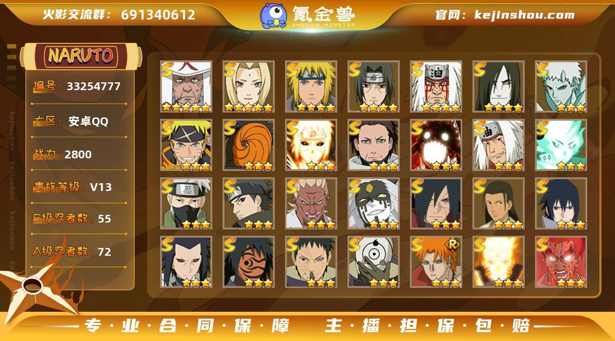 【2804】(可免费转苹果)v13,2800万战力,55S,72A,56000金币,55高招券,1100点券,3个传承(佑将 新春 功夫) 有熊猫,最终章场景,神驹斑90片,zp3563 【S级忍者】:长门「秽土转生」(3星),三代目风影「秽土转生」(3星),金角·银角「秽土转生」(3星),猿飞日斩「秽土转生」(3星),波风水门「秽土转生」(3星),千手扉间「秽土转生」(3星),千手柱间「秽土转生」(3星),宇智波鼬「秽土转生」(3星),宇智波斑「秽土转生」(3星),宇智波斑「秽土转生·解」(3星),大野木「忍界大战」(3星),春野樱「忍界大战」(3星),宇智波带土「忍界大战」(3星),艾「忍界大战」(3星),宇智波鼬「须佐能乎」(4星),宇智波止水「须佐能乎」(3星),旗木卡卡西「须佐能乎」(3星),宇智波斑「木叶创立」(3星),千手柱间「木叶创立」(3星),无「二代目土影」(3星),艾「四代目雷影」(3星),罗砂「四代目风影」(3星),鬼灯幻月「二代目水影」(3星),大野木「三代目土影」(3星),艾「三代目雷影」(3星),烈斗「初代目风影」(3星),自来也(3星),自来也「仙人模式」(4星),自来也「舞之豪杰」(3星),大蛇丸(4星),自来也「传说中的三忍」(3星),纲手(5星),纲手「百豪」(3星),千手柱间(3星),千手...