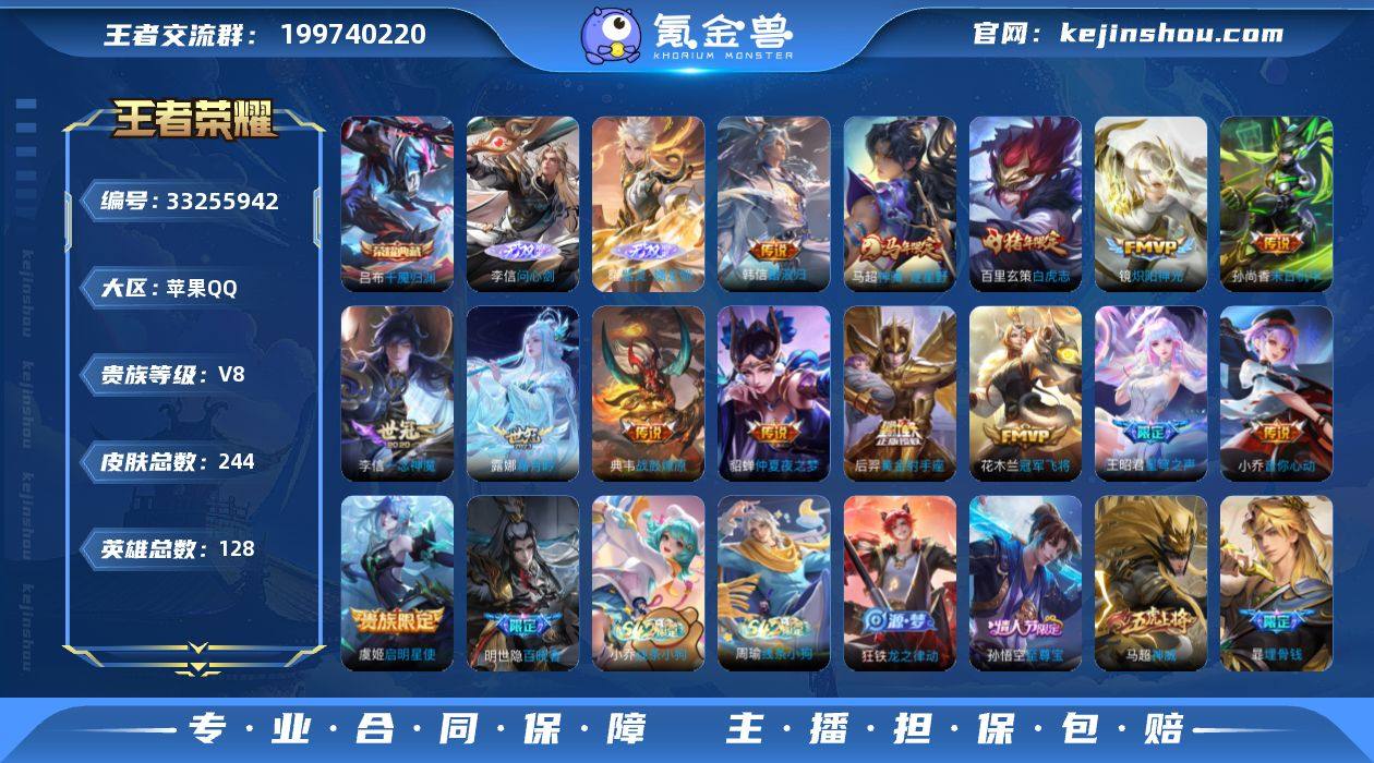 LK264811 无二次苹果Q-V8-最强王者段位-128英雄-244皮肤-1典藏皮肤-2无双-14传说-59史诗 【英雄全皮】:孙权全皮,狂铁全皮,敖隐全皮,影全皮 【荣耀典藏】:吕布千魇归渊 【无双皮肤】:李信问心剑,曜器灵螭龙剑 【传说皮肤】:韩信踏浪归,马超神骥逐星野,典韦战鼓燎原,露娜霜月吟,王昭君星穹之声,小乔音你心动,镜炽阳神光,虞姬启明星使,李信一念神魔,百里玄策白虎志,花木兰冠军飞将,后羿黄金射手座,貂蝉仲夏夜之梦,孙尚香末日机甲 【限定皮肤】:白起狰,暃埋骨钱,狄仁杰阴阳师,虞姬凯尔特女王,赵云皇家上将,妲己时之彼端,嬴政白昼王子,鲁班七号狮舞东方,高渐离死亡摇滚,高渐离玩趣恶龙,阿轲迷踪丽影,芈月重明,吕布猎兽之王,周瑜赤莲之焰,元歌云间偶戏,元歌无心,夏侯惇朔风刀,曹操烛龙,典韦穷奇,狄仁杰魔术师,狄仁杰万华元夜,达摩星际陆战队,达摩沙漠行僧,项羽海滩派对,老夫子醍醐杖,程咬金演武夺筹,刘邦夺宝奇兵,韩信飞衡,王昭君午后时光,王昭君星穹之声,兰陵王驯魔猎人,兰陵王金庭之子,亚瑟潮玩骑士王,孙悟空至尊宝,孙悟空大圣娶亲,牛魔御旌,李元芳云中旅人,虞姬启明星使,钟馗神迹守卫,钟馗驱傩正仪,雅典娜单词大...