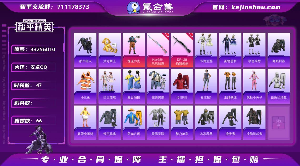 【LHPX2307】粉装2/粉枪5/珍稀飞行器130245/套装47/枪皮66/热力值18108/历史最高段位:王牌印记3次/Lv:45/五级AKS-74U-森灵之息/四级Kar98K-巳巳如意/五级Mk14-福马献瑞/四级AA12-G-萌骑幻想/三级DP-28-豹影疾电/怪诞乔克/都市猎人/派对舞王/小丑鱼/人物-小舞·雪昙/AKS-74U-森灵之息/Kar98K-巳巳如意/Mk14-福马献瑞/AA12-G-萌骑幻想/DP-28-豹影疾电/炫彩糖果飞行器/极意拳锋降落伞/炫彩糖果降落伞/暮色玫影降落伞/小舞降落伞/巳巳如意/套装-雪国风尚/角色-幸运青/套装-马上有钱/套装-迅捷龙虾/书海巡游/画境星梦/琴音绮想/角色-月烬之祷/套装-雨过天青/套装-红釉青花/AUG-冰晶雪宝/AKM-影袭/AKM-星之彼岸/GROZA-影袭/GROZA-暮色玫影/AUG-甜蜜菠萝/AUG-绝对恒星/M762-登顶巅峰/ACE32-画境星梦/UZI-幻影战神/UZI-影袭/UMP45-极意拳锋/汤姆逊-天降萌叽/汤姆逊-像素花束/MP5K-画境星梦/P90-霜月狼主/P90-巳巳如意/Kar98K-影袭/Kar98K-星穹咏叹调/M24-影袭/M1加兰德-画境星梦/S1897-炫彩节奏/S12K-幻影战神/AA12-G-画境星梦/MG3-幻世战舞者/平底锅-画境星梦/夏日倾情/完美偶像/旭日情侣/春日漫步/王牌教练/疯狂小兔子/白色伏地魔/破蛋小黄鸡/长空猛禽/阳光火鸡/雪鹰学院/魅力单车/鹰...