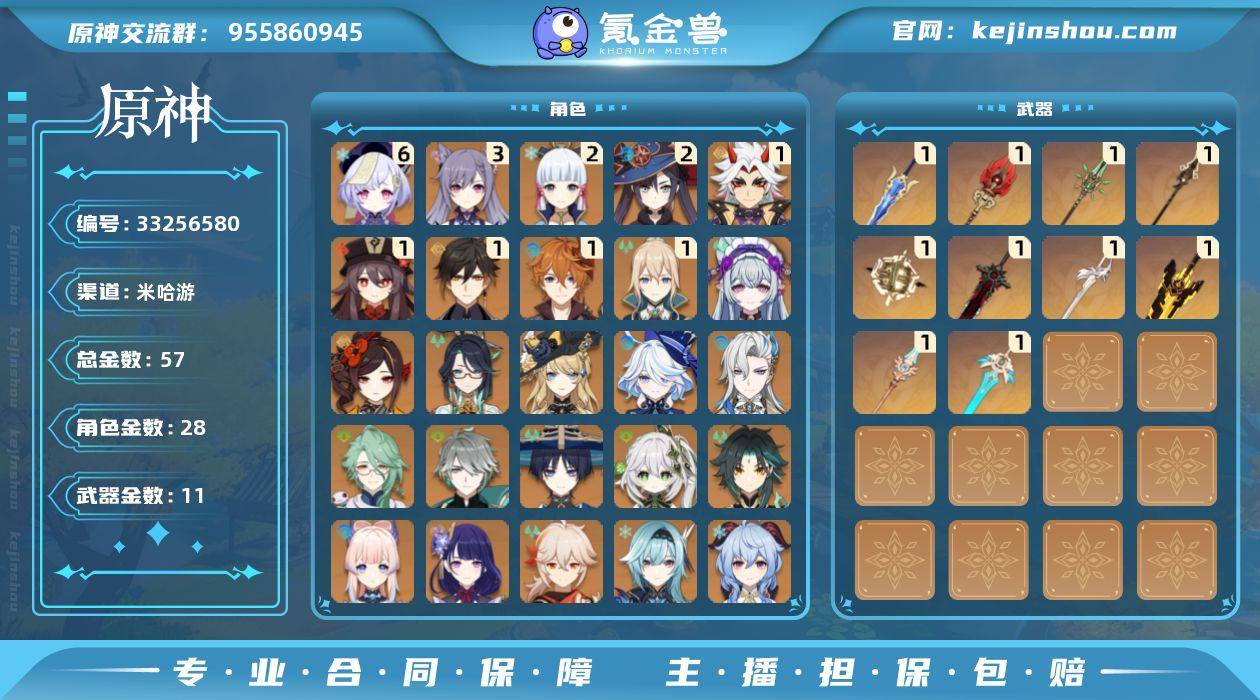 【店主推荐捡漏号】60级/57黄/女主/28个五星角色/11个五星武器 0命千织,0命闲云,0命娜维娅,0命芙宁娜,0命那维莱特,0命白术,0命迪希雅,0命艾尔海森,0命流浪者,0命纳西妲,0命提纳里,1命荒泷一斗,0命优菈,0命雷电将军,0命枫原万叶,2命神里绫华,1命钟离,1命胡桃,0命甘雨,0命魈,0命温迪,1命达达利亚,0命珊瑚宫心海,3命刻晴,满命七七,1命琴,2命莫娜,0命梦见月瑞希,精1松籁响起之时,精1无工之剑,精1护摩之杖,精1和璞鸢,精1天空之脊,精1贯虹之槊,精1天空之刃,精1尘世之锁,精1风鹰剑,精1狼的末路