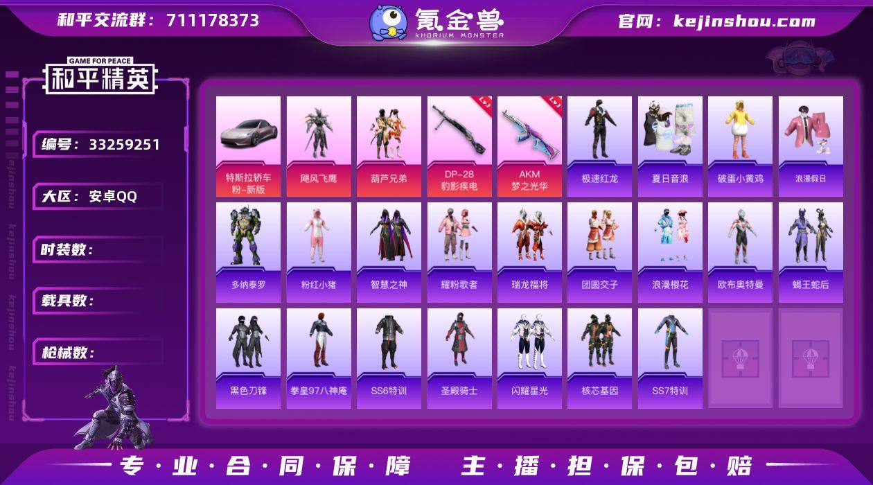 DSH2484【1载具-2粉装-3特效枪AKM-梦之光华[7级]】无二次安卓手Q-1载具-2粉装-3特效枪-100套装-118枪皮-7王牌印记-坚韧铂金Ⅱ-39310热力值【1载具】特斯拉Roadster(沁心粉)【2粉装】飓风飞鹰,葫芦兄弟【3特效枪】AKM-梦之光华[7级],DP-28-豹影疾电[4级],ACE32-萌骑漫游[5级]【4飞行器】镜光幻境飞行翼,异域银装飞行器,空岛之星尾迹,粉色滑翔尾迹【1头盔】火曜朱雀头盔【5背包】水曜玄武背包,火曜朱雀背包,金曜白虎背包,九霄背包,精灵迷巫背包【213其它衣服和枪皮】智慧之神,炫蓝之夏,霓虹热舞,惊鸿侠骨,雪山征服者,传奇侦探,SS38特训,竞技勇士朋克,SS27特训,SS19特训,SS31特训,冰河战士,老实芭蕉,SS20特训,浪漫樱花,黄色运动,燃烧卡路里,锦衣飞扬,霓虹街区,星梦畅游,精神漫游,SS29特训,特战装甲,黑色刀锋,SS7特训,核芯基因,鹤鸣,SS18特训,红色运动,拳皇97八神庵,SS16特训,青涩时光,蝶变,圣殿骑士,角色-多纳泰罗,SS30特训,SS21特训,霓虹闪烁,福星高照,炽焰拳师,暴风机械师,长空猛禽,SS6特训,薄荷星砂,丛林猎人,竞技名士,SS24特训,龙魂突击队,SS32特训,幻世战舞者,团圆交子,空投萌叽,云魄琉璃,耀粉歌者,龙的传人,虎虎生威吉莉,冷焰舞者,SS37特训,空岛之星,北国孤狼,浪漫假日,快闪...