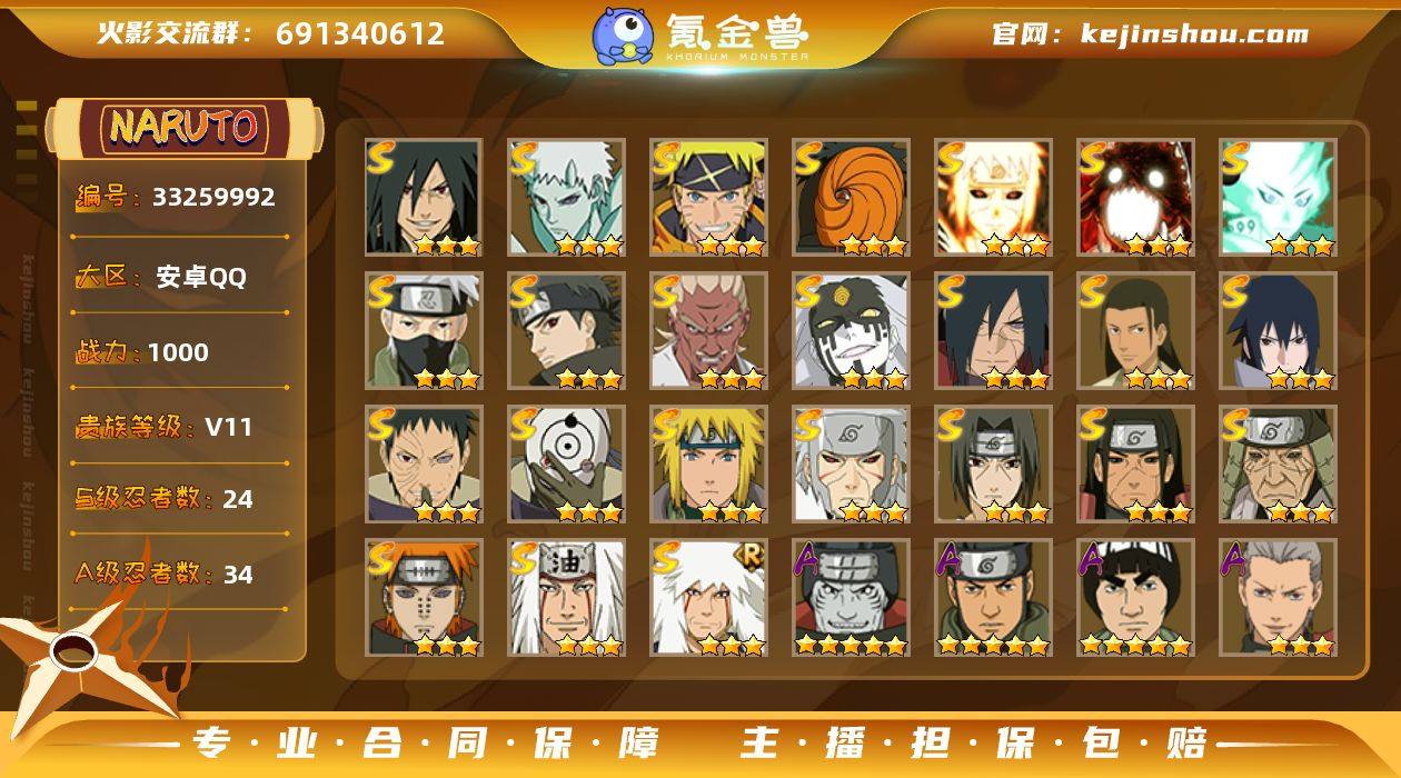 【性价比中配号 活动价 马斑已出】y7575 战力1000w 24s 34a 3个198a 6500金币 20抽 大福袋剩余16天 198忍法帖已开185级 最终章主场景 44片传说自来也 39片纲手 48片烈斗 81片超哥