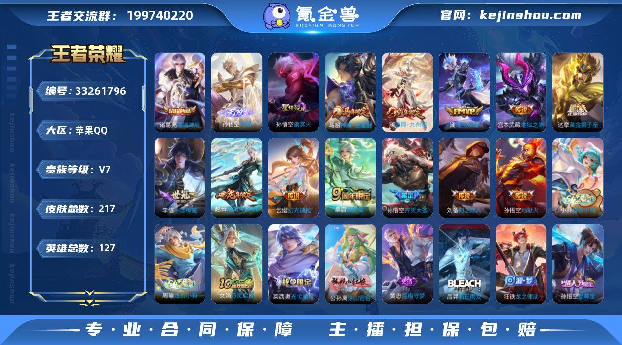 苹果Q-V7-永恒钻石IV段位-127英雄-217皮肤-1典藏皮肤-1无双-12传说-52史诗 【英雄全皮】:敖隐全皮 【荣耀典藏】:诸葛亮星域神启 【无双皮肤】:孙悟空无相 【传说皮肤】:马超神骥逐星野,澜愿照九州拓,云缨幻光神枪,桑启鸣野蒿,赵云乘龙铭钟鼎,澜逐花归海,孙悟空齐天大圣,李信一念神魔,刘备时之恋人,达摩黄金狮子座,宫本武藏地狱之眼,孙悟空地狱火 【限定皮肤】:姜子牙天穹之誓,杨戬破阵退雄兵,李白谪仙醉月,狄仁杰阴阳师,赵云皇家上将,孙尚香蔷薇恋人,庄周高山流水,元歌无心,狄仁杰魔术师,达摩星际陆战队,达摩沙漠行僧,项羽海滩派对,兰陵王金庭之子,孙悟空至尊宝,孙悟空孙行者,孙悟空齐天大圣,李元芳云中旅人,钟馗神迹守卫,钟馗驱傩正仪,鬼谷子五谷丰年,苏烈千军破阵,沈梦溪大漠名商,裴擒虎擒涛扼浪,上官婉儿梁祝,鲁班大师探海日志,桑启海盐诗旅,张良古海寻踪,蒙犽百解令,鬼谷子天穹祈灯,伽罗琥珀纪元,姬小满妄想食味,赵云乘龙铭钟鼎,百里玄策超元猎域,沈梦溪龙舞盛年,刘邦剑破天穹,程咬金群星魔术团,镜青焰无极,项羽苍威无极,刘备异域游侠,周瑜熔金海岸 【年限皮肤】:赵云乘龙铭钟鼎,澜愿照九州拓 【赛季限定】:钟...