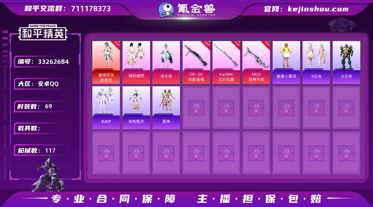 crhp46+特价出【4级欧若拉 洛天依 番茄 1红 3粉 3特 】安卓手Q-1神装-3粉装-3特效枪-69套装-117枪皮-3王牌印记-英勇黄金Ⅰ-37634热力值【1神装】镜域双华-欧若拉[4级]【3粉装】角色-羊梦糖心,角色-洛天依,桃粉嫣然【3特效枪】DP-28-豹影疾电[4级],Kar98K-巳巳如意[5级],MG3-洛神天依[6级]【5飞行器】破刃行动尾迹,空岛之星尾迹,深渊漩涡飞行器,终晖之翼飞行器,异域银装飞行器【179其它衣服和枪皮】鱼渊荷华,竞技名士,龙的传人,薄荷星砂,画境星梦,顶瓜瓜,书海巡游,异域银装,雪绒豹,恋语绒绒,霓虹热舞,老实芭蕉,极速光影,琴音绮想,空岛之星,粉恋花,SS32特训,霓虹街区,彩虹兔,冷焰舞者,SS37特训,星途旅人,大橘大利,SS34特训,角色-瑰梦爱神,长空猛禽,魅力单车,SS35特训,天籁歌者,纯真浪花,擎苍青焰,巳巳如意,破蛋小黄鸡,疯狂小兔子,角色-俏兔智灵,SS36特训,SS33特训,玉兔迎春,柠萌假日,雪国风尚,蓝冰羽,燕燕于飞,战术大师,角色-达芬奇,小鸟芋圆,蝶变,朱霞炽焰,凌霄紫焰,街头风暴,SS25特训,红熊茄茄,元气之梦,角色-无面战甲,缤纷果语,热情海星,角色-蜜桃派对,SS28特训,云朵鹅,SS27特训,SS31特训,角色-申公豹,紫幽梦,电音精灵,海盐绵绵冰,玩偶服-喜羊羊,S12K-破晓战魂,QBZ-纯真浪花,A...