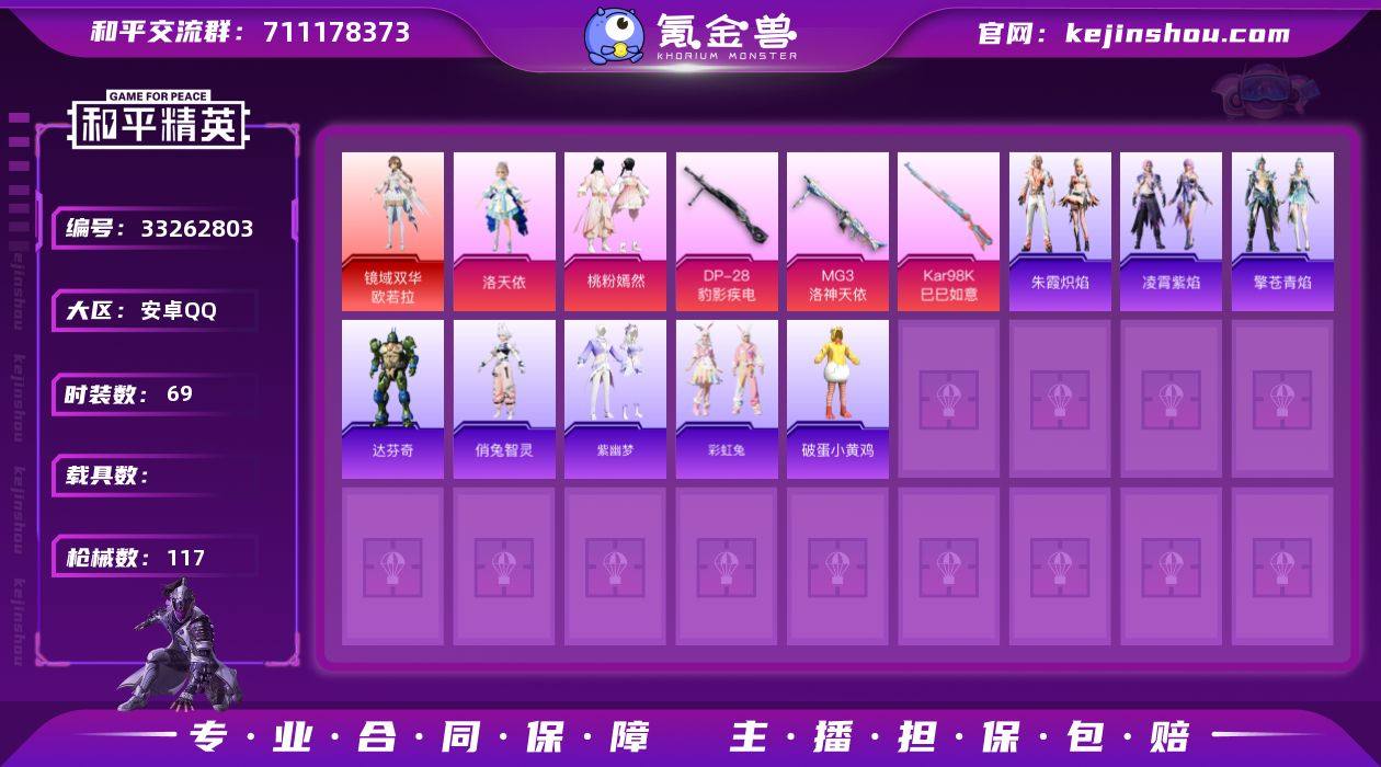 【955375】crhp46+特价出【4级欧若拉 洛天依 番茄 1红 3粉 3特 】安卓手Q-1神装-3粉装-3特效枪-69套装-117枪皮-3王牌印记-英勇黄金Ⅰ-37634热力值【1神装】镜域双华-欧若拉[4级]【3粉装】角色-羊梦糖心,角色-洛天依,桃粉嫣然【3特效枪】DP-28-豹影疾电[4级],Kar98K-巳巳如意[5级],MG3-洛神天依[6级]【5飞行器】破刃行动尾迹,空岛之星尾迹,深渊漩涡飞行器,终晖之翼飞行器,异域银装飞行器【179其它衣服和枪皮】鱼渊荷华,竞技名士,龙的传人,薄荷星砂,画境星梦,顶瓜瓜,书海巡游,异域银装,雪绒豹,恋语绒绒,霓虹热舞,老实芭蕉,极速光影,琴音绮想,空岛之星,粉恋花,SS32特训,霓虹街区,彩虹兔,冷焰舞者,SS37特训,星途旅人,大橘大利,SS34特训,角色-瑰梦爱神,长空猛禽,魅力单车,SS35特训,天籁歌者,纯真浪花,擎苍青焰,巳巳如意,破蛋小黄鸡,疯狂小兔子,角色-俏兔智灵,SS36特训,SS33特训,玉兔迎春,柠萌假日,雪国风尚,蓝冰羽,燕燕于飞,战术大师,角色-达芬奇,小鸟芋圆,蝶变,朱霞炽焰,凌霄紫焰,街头风暴,SS25特训,红熊茄茄,元气之梦,角色-无面战甲,缤纷果语,热情海星,角色-蜜桃派对,SS28特训,云朵鹅,SS27特训,SS31特训,角色-申公豹,紫幽梦,电音精灵,海盐绵绵冰,玩偶服-喜羊羊,S12K-破晓战魂,QBZ-...