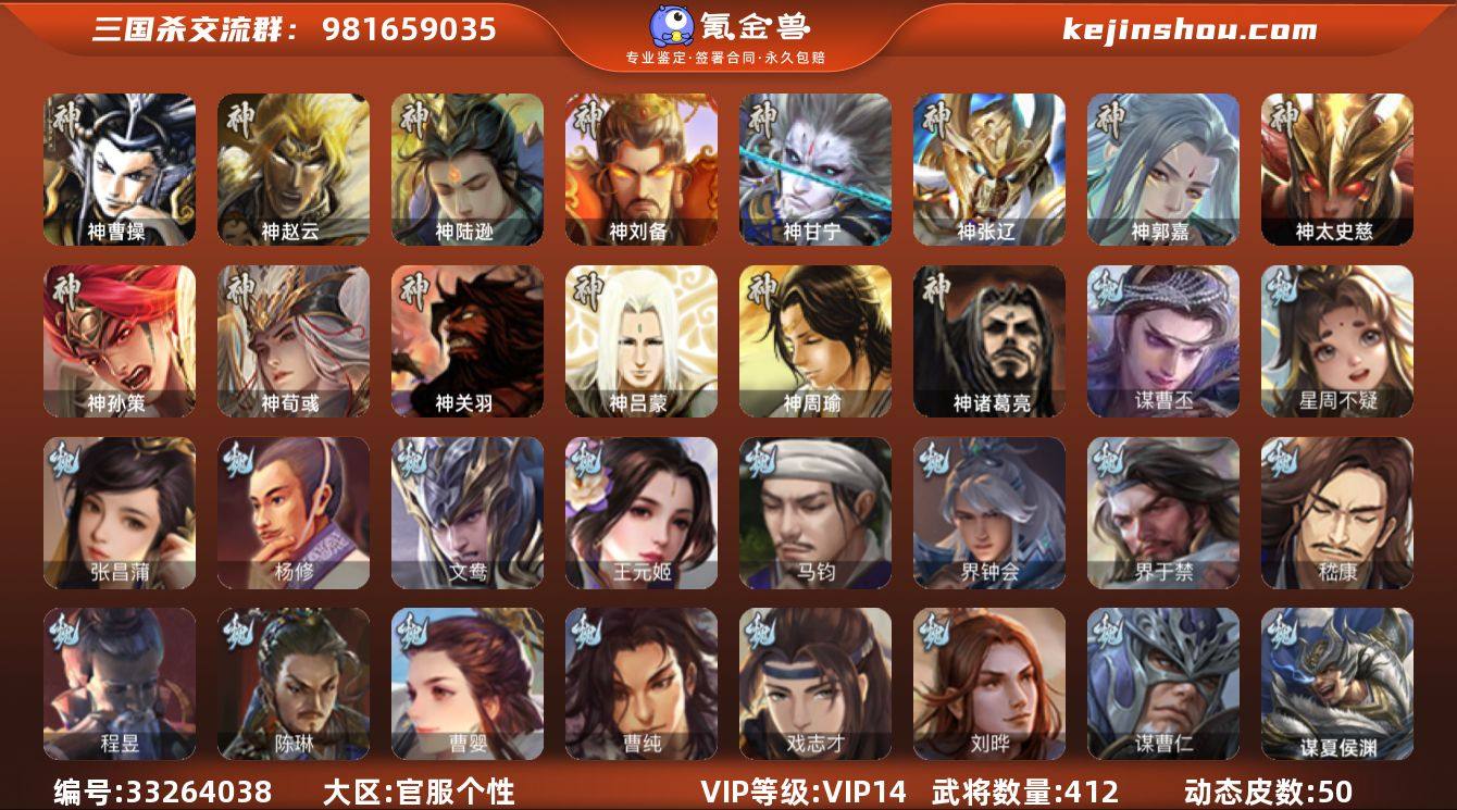 官阶:大将军;VIP等级:VIP14;史诗武将数量:68;动态皮肤数量:50;武将总数:412;史诗宝珠数量:0;将魂数量:83;神将:11;魏国史诗武将:28;蜀国史诗武将:12;吴国史诗武将:10;群史诗武将:21 神曹操,神赵云,神陆逊,神刘备,神甘宁,神张辽,神郭嘉,神太史慈,神孙策,神荀彧,神诸葛亮,星周不疑,谋曹仁,张昌蒲,杨修,王元姬,马钧,界钟会,界于禁,嵇康,陈琳,曹婴,曹纯,戏志才,刘晔,谋曹丕,程昱,谋诸葛亮,谋刘备,马云騄,谋黄忠,谋赵云,谋马超,赵襄,沙摩柯,谯周,界黄忠,花鬘,董允,谋黄盖,谋孙策,周处,孙寒华,骆统,界朱然,界徐盛,贺齐,文鸯,十常侍,谋貂蝉,星魏延,界沮授,左慈,张让,徐荣,星黄忠,星甘宁,麹义,南华老仙,刘焉,沮授,界左慈,界李儒,公孙康,杜预,卑弥呼,许攸,兀突骨,士燮,神吕蒙,神周瑜,神关羽,势夏侯尚,SP关羽,SP蔡文姬,乐进,曹昂,诸葛诞,朱灵,文聘,SP姜维,张春华,钟会,曹冲,郭淮,满宠,界王异,界曹操,界司马懿,界夏侯惇,界张辽,界许褚,界郭嘉,李典,曹真,韩浩史涣,陈群,曹叡,曹休,钟繇,司马朗,王基,李通,郭皇后,孙资刘放,辛宪英,界甄姬,吕虔,鲁芝,蒯越蒯良,界典韦,界荀彧,界徐晃,杜畿,界曹丕,毌丘俭,界邓艾,张恭,界曹植,界满宠,界郭淮,华歆,袁涣,王双,崔琰,杨阜,谋于禁,界曹休,...