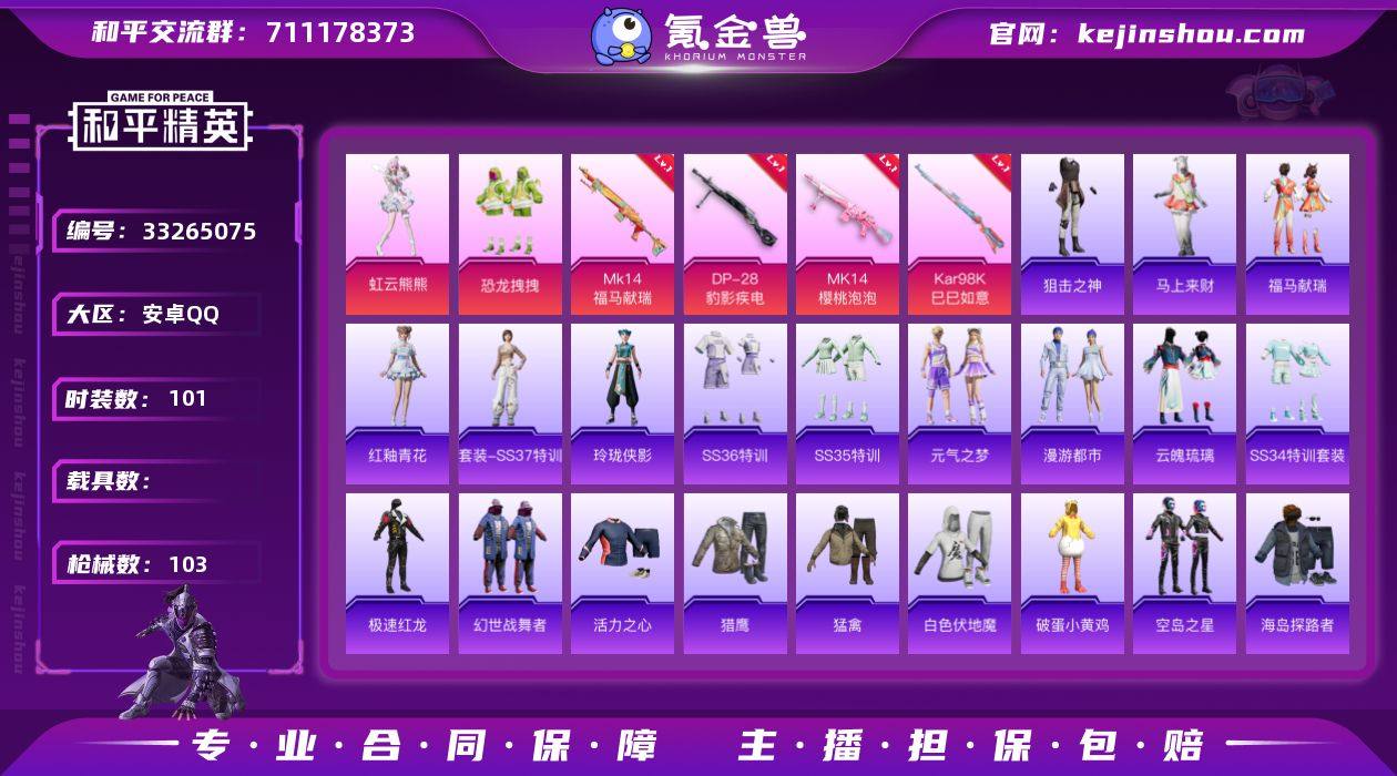 【4特效枪2粉装 秒换绑不用等】 安卓Q区-33420热力值-101套装-103枪皮 【2粉装】 恐龙拽拽 虹云熊熊【4特效枪】 Mk14-福马献瑞(5级) Mk14-樱桃泡泡(7级) Kar98K-巳巳如意(5级) DP-28-豹影疾电(5级)【133热门】 极速红龙 白色伏地魔 SS27特训 SS26特训 SS25特训 SS24特训 UMP45-蓝色火焰 M249-彩虹符号 MG3-幻世战舞者 M416-蓝色火焰 破蛋小黄鸡 长空猛禽 弄潮海豚 特训学院 青涩时光 青年教官 霓虹街区 魅力单车 六六大吉 猎鹰 蓝色运动 活力之心 黑色伏地魔 海岛探路者 M762-奇异狩猎者 AA12-G-雨过天青 沙漠之鹰-雨过天青 玲珑侠影 M16A4-雨过天青 M249-无面战甲 Vector-荒原烈焰 雨过天青 冰河战士 雏菊兔兔 MG-36-薄荷星砂 GROZA-福马献瑞 SS34特训 达芬奇 漫游都市 福马献瑞 燃点复合弓-罪夜之冕 龙魂突击队 SS29特训 萝兰蝴蝶 破片手榴弹-爆破雪人 SS30特训 ACE32-冰晶雪宝 青团波波 糖糖葫芦 DP-28-Alan Walker潮音版 SS28特训 海盐绵绵冰 M16A4-冰河战士 SS31特训 SS33特训 SS32特训 巳巳如意 M762-雏菊兔兔 Mini14-雏菊兔兔 焰鹰斗篷 R1895-雏菊兔兔 幽夜迷踪 SS36特训 撬棍-朗基努斯之枪 老实芭蕉 智谋强哥 战术大师 马上来财 蜜桃派对 蜜獾-启元战纹 Mk47-虹云熊熊...