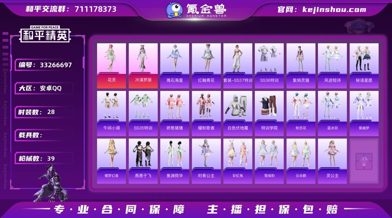 【和平精英】3粉装,11特效枪,2载具,历史最高段位:超级王牌10星 王牌印记6次 热力值:37705,80套装,125枪械,146装备,86战备;套装:角色-冷漠罗丽,角色-花灵,角色-绝对恒星,套装-特训学院,套装-猎鹰,套装-青年教官,套装-橘黑制服,套装-红色运动,套装-黄色运动,套装-蓝色运动,套装-黄色伏地魔,套装-白色伏地魔,套装-黑色伏地魔,套装-黄色名流,套装-长空猛禽,套装-海岛探路者,套装-完美偶像,套装-街头潮人,套装-蓝彩潮人,套装-魅力单车,套装-绮丽涂鸦,套装-竞技达人朋克,套装-幻世战舞者,套装-青涩时光,套装-缤纷果语,套装-破蛋小黄鸡,套装-军械专家,套装-鹤鸣,套装-白糯汤圆,套装-战术大师,套装-狙击之神,套装-耀粉歌者,套装-娇憨猪猪,套装-光之冒险,套装-绯格组合,套装-王牌教练,套装-柠萌假日,套装-恋语绒绒,套装-街头风暴,角色-紫俏灵猫,套装-异域银装,套装-星途旅人,套装-SS30特训,套装-蓝调潮影,套装-SS31特训,套装-鱼渊荷华,套装-燕燕于飞,套装-紫幽梦,套装-粉恋花,套装-SS33特训,套装-云朵鹅,套装-巳巳如意,套装-SS32特训,套装-彩虹兔,套装-樱梦幻音,套装-蓝冰羽,套装-雪绒豹,套装-狂鲨锋刃,套装-乐游...