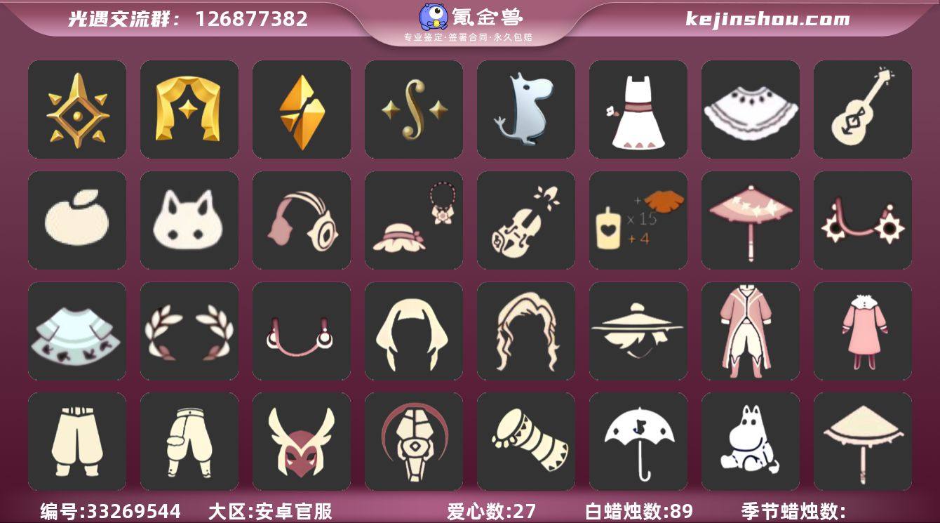 账号类型: 邮箱账号 季节已毕业: 预言季,表演季,破晓季,二重奏季,姆明季 完成地图: 霞谷 珍稀物品: 阿努比斯(狗头),白枭 礼包: 白绒金,吉他,橘子,兔子,彩虹耳机,向日葵套,小提琴,创始人,飞鸟纸伞,日光耳环,遥鲲披肩斗篷,满月耳坠,锦标赛桂冠,向日葵连衣裙 裤子: 武士裤,搓澡巾,妮妮裙子,青鸟尊贵蓬头裤子 面具: 阿努比斯,黄眉企鹅面具 发型: 若笠,虚荣,留辫蘑菇头 头饰: 蓝色音乐会 斗篷: 遥鲲斗篷,燕尾斗篷,冥龙斗篷 配饰: 雨伞,高音钢琴,姆明抱枕,小红伞,二重奏挂画,圆鼓 亮点: 【优质装备】:预言季,阿努比斯(狗头),表演季,白枭(帝企鹅发),武士裤,青鸟尊贵蓬头裤子(蓝色燕尾服),破晓季,高音钢琴(白色高脚钢琴),妮妮裙子(妮妮长裙),姆明抱枕,二重奏季,二重奏挂画(合奏挂画),姆明季,黄眉企鹅面具,留辫蘑菇头,遥鲲斗篷(双翼遥鲲斗),燕尾斗篷,冥龙斗篷,圆鼓(手拍大鼓),小提琴(凯旋提琴),吉他(音韵吉他)(白吉他),白绒金(白雪斗篷),霞谷,若笠(箬笠),小红伞(姆明红伞)(姆明大伞),飞鸟纸伞,遥鲲披肩斗篷(披肩外袍),彩虹耳机,向日葵套(夏日有友礼包),向日葵连衣裙(连衣裙),创始人(创始人斗篷),锦标赛桂冠,兔子(玉兔头饰)(玉兔发饰)(兔子发饰),日光耳环,满月耳坠,橘子(大橘大利)
