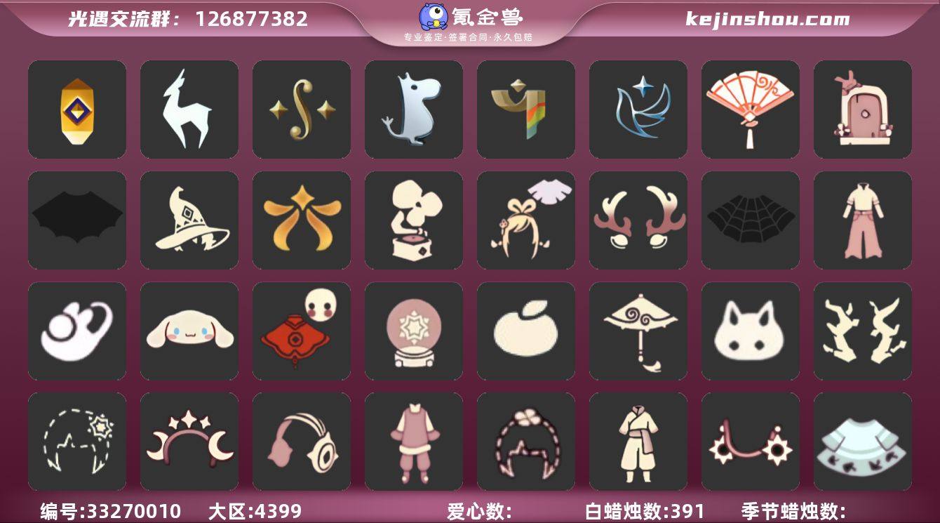 VIVO 手机账号 8毕业季 6毕业图 391蜡烛 【季节已毕业】追忆季,九色鹿(九色鹿季),二重奏季,姆明季,彩染季,青鸟季,双星季,迁徙季 【完成地图】晨岛,云野,雨林,霞谷,墓土(暮土),禁阁 【礼包】牛仔裤(阔腿牛仔),优雅三件套(西装套装),兔子鞋(兔子拖鞋),新年裤(瑞气服饰),暗彩装扮(彩虹武士裤),巫师(巫师帽),绊爱(绊爱斗篷)(绊爱礼包),橘子(大橘大利),雪花(雪花发夹),兔子(玉兔头饰)(玉兔发饰)(兔子发饰),大耳狗发饰(迷你大耳狗发饰),四叶草(四叶草头饰),星月头饰(星月头冠),彩虹耳机,日光耳环,满月耳坠,枯角(巫树犄角),鹿角(圣诞鹿角),欧若拉之翼,福娃(福娃礼包)(春之日礼包)(铜钱斗),遥鲲披肩斗篷(披肩外袍),蝙蝠套(蝙蝠斗篷)(南瓜头),蜘蛛斗(蛛丝斗篷)(蛛网斗篷),青衫落拓礼包,红伞(瑞气纸伞),献瑞折扇礼包,音乐桌(网易云留声机),雪花球(雪花水晶球),仙境茶会门扉礼包 【裤子】青鸟尊贵蓬头裤子(蓝色燕尾服),飞天裤(柔缎花边连)(九色鹿丝带裤),妮妮裙子(妮妮长裙),武士裤,背带裤,搓澡巾 【面具】辉光羚羊面具 【面饰】青鸟毕业面饰(青鸟面饰),红耳机 【项链】围巾(肩带) 【发型】飞天盘发(九色鹿丸子头),虚荣,若笠(箬笠) 【头饰】平顶帽 【斗篷】青鸟毕业斗篷(青鸟斗篷),彩染...