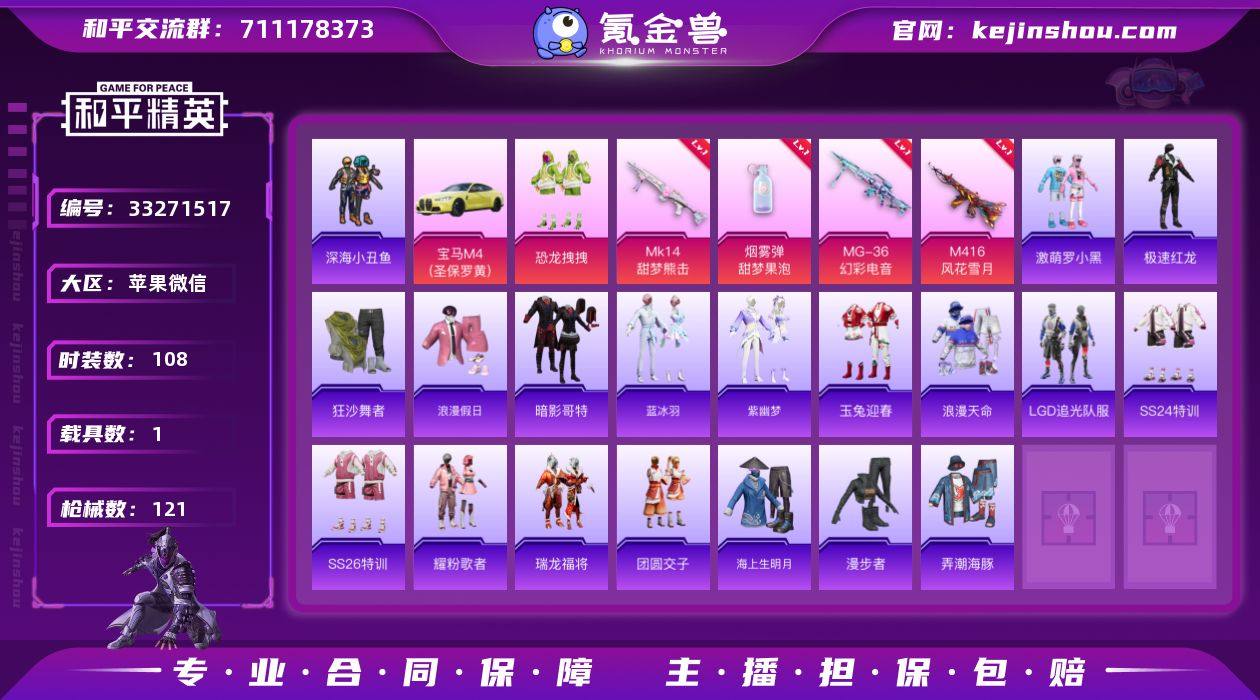 限制-无二 游戏65级 1车1粉4特 粉熊背包 暗影哥特 浪漫天命 深海小丑鱼 M416风花雪月 王牌四分卫飞行器 萌熊伴侣背包