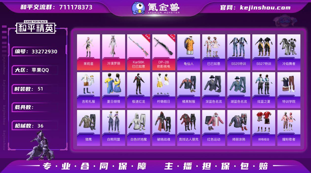 苹果 手Q-2粉装-2特效枪-0载具-0粉色飞行器-12110热力值-0王牌印记-51套装-36枪皮 【热门品类】:套装-龟仙人 【粉色套装】:角色-茉莉星,角色-冷漠罗丽 【粉色枪皮等级】:Kar98K-巳巳如意(五级),DP-28-豹影疾电(三级) 【粉色枪皮】:Kar98K-巳巳如意,DP-28-豹影疾电 【粉色降落伞】:彩虹甜喵降落伞,炫光之旅降落伞 【稀有套装】:套装-龟仙人,套装-巳巳如意 【稀有枪皮】:AKM-龙的传人,M16A4-幻世战舞者,SCAR-L-炫彩节奏,Mk47-炫光之旅,AC-VAL-天降萌叽,AC-VAL-彩虹甜喵,汤姆逊-天降萌叽,P90-巳巳如意,SKS-炫彩节奏,VSS-星之彼岸,Mini14-穿刺龙虾,Mini14-阿狸红,M417-惊鸿侠骨,M200-惊鸿侠骨,S686-生命誓言,S686-巳巳如意,DBS-彩虹甜喵,DBS-彩虹符号,MG3-幻世战舞者,MG3-惊鸿侠骨,爆炸猎弓-惊鸿侠骨,破片手榴弹-巳巳如意 【其他套装】:套装-SS25特训,套装-SS27特训,套装-冷焰舞者,套装-吉莉礼服,套装-夏日倾情,套装-极速红龙,套装-柠萌假日,套装-橘黑制服,套装-深蓝色名流,套装-湖蓝色名流,套装-炫蓝之夏,套装-特训学院,套装-猎鹰,套装-白熊同盟,套装-白色伏地魔,套装-破晓战魂,套装-竞技达人朋克,套装-红色运动,套装-绮丽...