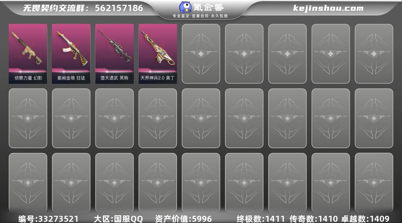 【英雄】:炼狱,暮蝶,铁臂,捷风,幽影,不死鸟,贤者,猎枭,蝰蛇,零,芮娜,奇乐,尚勃勒,霓虹,斯凯,黑梦 【近战武器】:近战武器-刻骨铭心 【狂徒】:狂徒-紫阙金琅 【幻影】:幻影-侦察力量 【冥驹】:冥驹-堕天遗武 【奥丁】:奥丁-天界神兵//2.0 【VCT手枪】:标配-VCT26 x FPX 【卡面】:无畏契约:暮蝶 卡面,热舞环节 卡面,无畏契约GO!第一卷:芮娜 卡面,无畏契约GO!第一卷:零 卡面,《双城之战》金克丝 卡面,代号红色 卡面,新兵报到 卡面,V契约 卡面,无畏契约 卡面 【喷漆】:伤心心 喷漆,霓光四射 喷漆,买装还是存钱 喷漆,关门放狗 喷漆,红鳞 喷漆,松叶 喷漆,放下武器 喷漆,胜利属于无畏契约 喷漆,GLHF 喷漆,无畏契约 喷漆 【挂饰】:无畏契约GO!第一卷 零 挂饰,鱼骨头 挂饰,天外飞客 挂饰,《双城之战》魄罗 挂饰,无畏契约 纪念币 挂饰