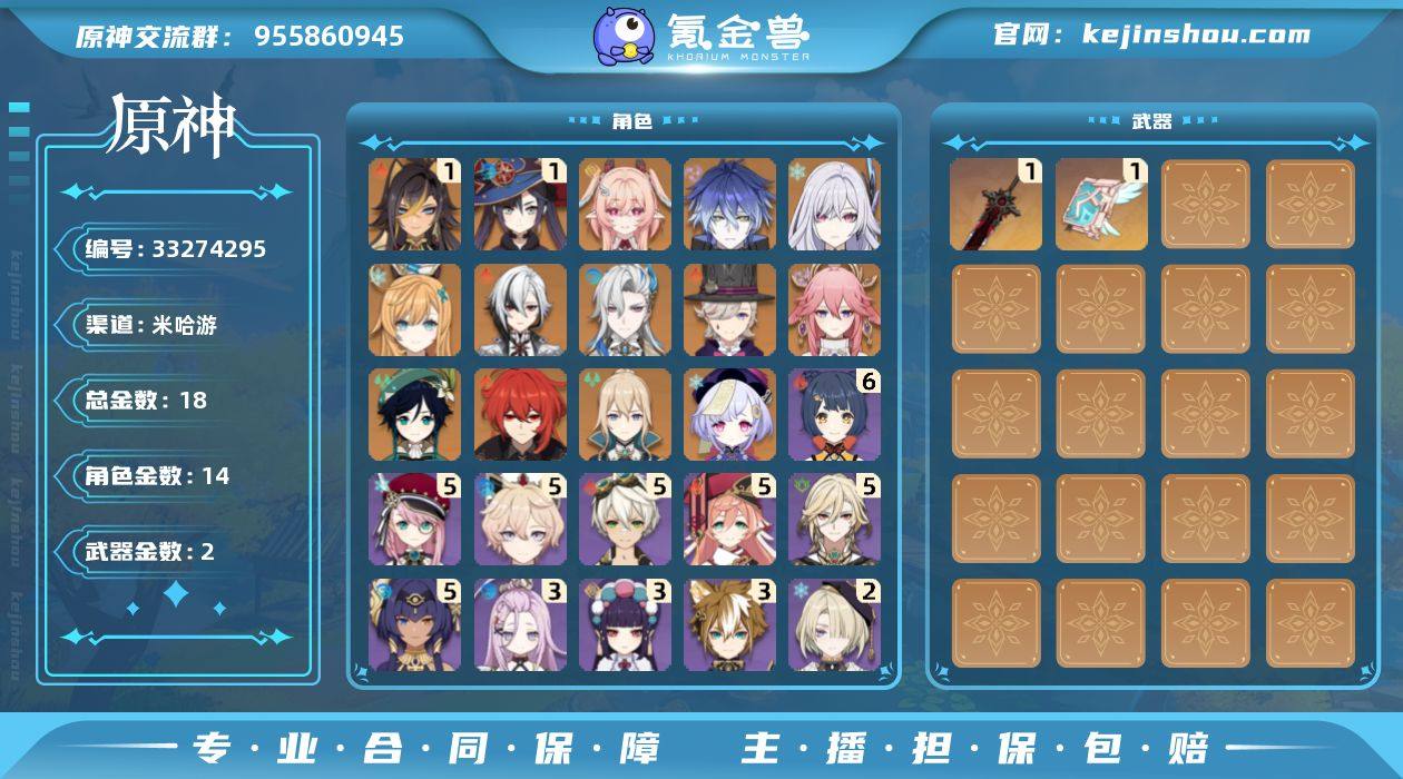 18黄! 冒险等级: 57 1命金色角色: 一命莫娜,一命迪希雅 0命金色角色: 迪卢克,温迪,七七,琴,八重神子,林尼,那维莱特,阿蕾奇诺,爱可菲,丝柯克,菲林斯,莉奈娅 拥有武器: 狼的末路,天空之卷 1精武器: 狼的末路,天空之卷