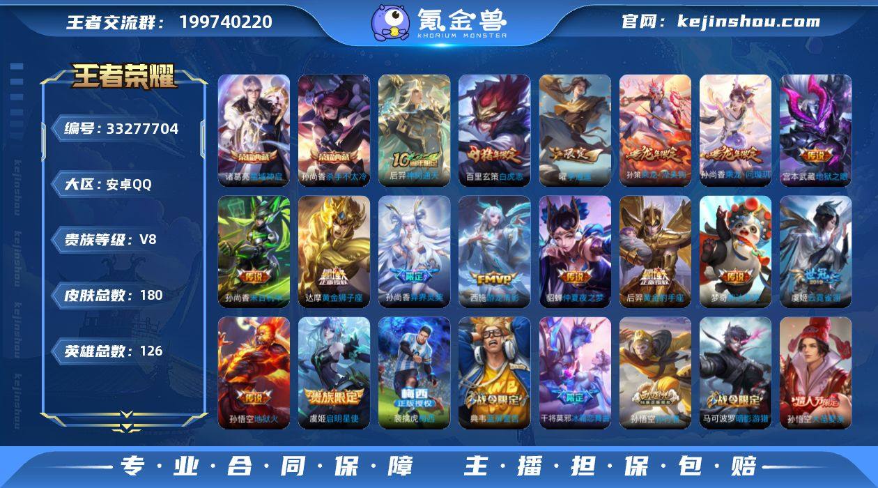 可换绑【高性价比小号推荐·诸葛亮孙尚香典藏·梅西·李逍遥·孙策孙尚香龙限·异界灵契·白虎志·冰霜恋舞曲·大圣娶妻】 2按键 9王者印记 160五级铭文 可二次BX5879安卓Q-V8- 180皮肤-2典藏皮肤-16传说-55史诗【英雄全皮】:猪八戒全皮【荣耀典藏】:孙尚香杀手不太冷,诸葛亮星域神启【传说皮肤】:后羿神树通天,孙尚香乘龙问璇玑,孙策乘龙淬吴钩,孙尚香异界灵契,西施游龙清影,曜李逍遥 ,虞姬启明星使,虞姬云霓雀翎,达摩黄金狮子座,百里玄策白虎志,梦奇胖达荣荣,后羿黄金射手座,貂蝉仲夏夜之梦,孙尚香末日机甲,宫本武藏地狱之眼,孙悟空地狱火【限定皮肤】:狄仁杰阴阳师,赵云皇家上将,赵云引擎之心,嬴政白昼王子,孙尚香蔷薇恋人,孙尚香异界灵契,庄周高山流水,阿轲迷踪丽影,吕布猎兽之王,典韦蓝屏警告,马可波罗暗影游猎,狄仁杰魔术师,狄仁杰万华元夜,达摩沙漠行僧,项羽海滩派对,老夫子醍醐杖,程咬金演武夺筹,刘邦夺宝奇兵,兰陵王金庭之子,孙悟空大圣娶亲,孙悟空孙行者,牛魔御旌,后羿圣弓游侠,李元芳云中旅人,虞姬启明星使,钟馗驱傩正仪,女娲朔望之晖,干将莫邪冰霜恋舞曲,干将莫邪真爱魔法,雅典娜黎明之约,蔡文姬繁星吟游,鬼谷子原初...