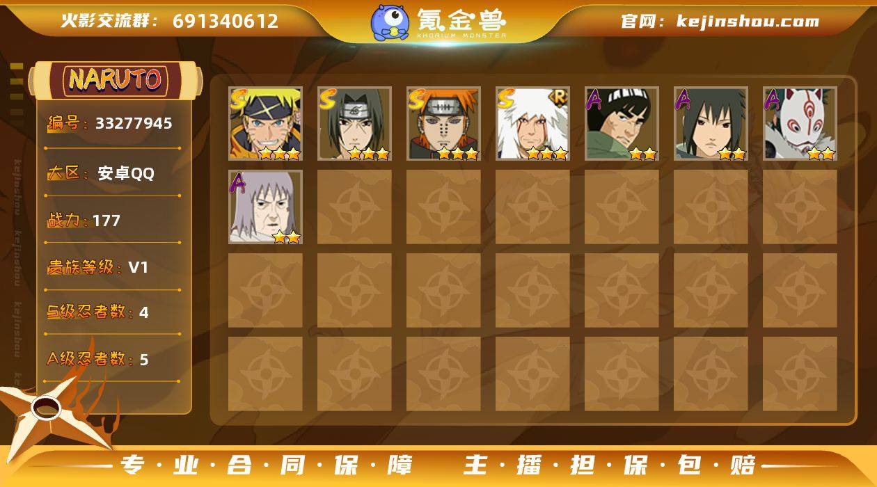 4S级忍者数-5A级忍者数 【S级忍者】:宇智波鼬「须佐能乎」(3星),自来也「舞之豪杰」(3星),佩恩「天道」(3星),漩涡鸣人·宇智波佐助(3星) 【A级忍者】:小南「神驹佑将」(2星),神秘面具男「忍者之路」(2星),千代「近松十人卫」(2星),宇智波泉奈(2星),迈特凯「青春爆炸」(2星)