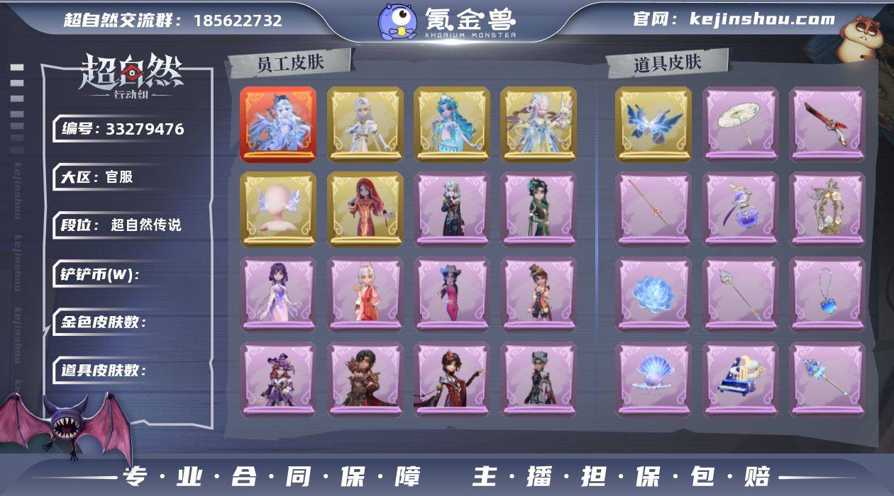 【幻梦皮肤】:薇薇安-沧海之遗 【耀世皮肤】:逍遥-剑仙,薇薇安-海月息潮,巫铃儿-镜花辞,莉莉-瑶台梦 【典藏皮肤】:小黄-异色序曲,小黄-呱呱雨衣,小黄-霓裳踏雪,爱丽丝-耀眼的你,爱丽丝-丝缕哀歌,零-搬开山,零-磨砺成锋,阿念-迷途僵宝,阿念-庆宴绮愿,逍遥-绣春逍影,薇薇安-仙锋小姐,巫铃儿-琢玉怀乡,巫铃儿-素影瑶光,莉莉-莓果陷阱,莉莉-除妖小师妹,莉莉-情公主,艾伦-绒绒对决,艾伦-黎明猎手,爱德华-梵卓之礼,兰-千夜星谕,临云-织锦云程 【头饰】:煤球喵头套,芝麻糊汤圆,马上有钱,饺饺者头套,烛光纪念,蒜了八,腊肠扭扭,太空鲨头套,雪墩墩头套,樱桃奶油布丁,小狗蛇点点头套,惊魂南瓜头套,精致露比头套,大葱明头套,火爆了头套,炙热烧烤,鳄霸天头套,驼半仙头套,咬咬鲨头套,鱼头怪头套,烈焰红唇头套,面具马头套,哈士奇头套,萨卡班甲鱼头套,卑微头套,呆滞头套,滑稽头套,嘻嘻头套 【美妆】:听潮祝福,萌兔气泡 【背饰】:夜浮船,牛啤背包,蛋黄啵啵,子夜证词,炽天使的余烬,醉花阴,白鼬趴趴,蝶恋花,潮汐小海兔,云梦之星,兔先生的时钟 【挂饰】:孤独对望,拂云仙,不朽的今夜,尘封旧事,糖果守卫,九色祥鹿,钗头凤...