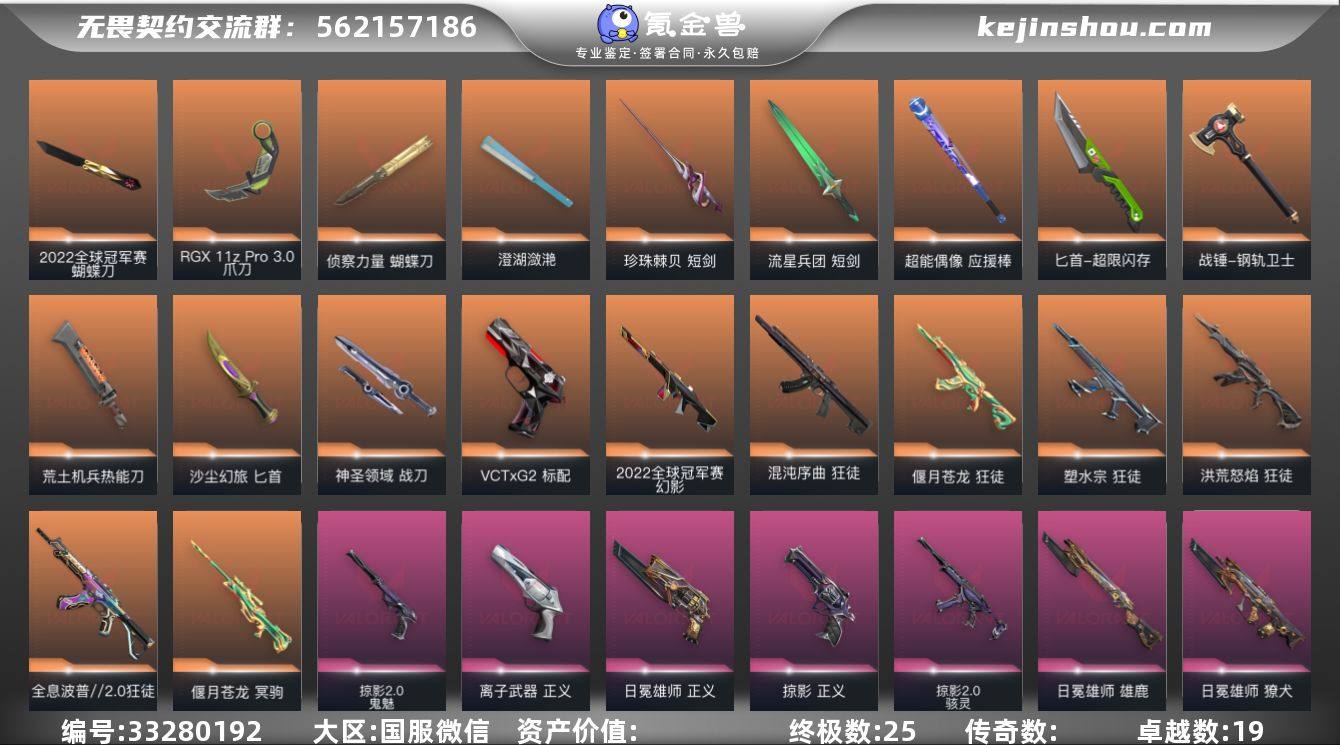 【955536】【套装】:2022全球冠军赛套装,掠影//2.0套装,日冕雄师套装,掠影套装 【英雄】:幻棱,炼狱,维斯,暮蝶,钛狐,壹决,铁臂,捷风,雷兹,幽影,不死鸟,贤者,猎枭,蝰蛇,芮娜,尚勃勒,霓虹,斯凯,夜露,星礈,K/O,海神,黑梦,钢锁 【近战武器】:近战武器-2022全球冠军赛 蝴蝶刀,近战武器-影钩,近战武器-侦察力量 蝴蝶刀,近战武器-紫金爪刀,近战武器-RGX 11z Pro//3.0 爪刀,近战武器-威龙之刃,近战武器-澄湖潋滟,近战武器-埃芒迪尔大剑,近战武器-珍珠棘贝 短剑,近战武器-流星兵团 短剑,近战武器-超能偶像 应援棒,近战武器-超限闪存 匕首,近战武器-钢轨卫士 战锤,近战武器-荒土机兵 热能刀,近战武器-沙尘幻旅 匕首,近战武器-影刃,近战武器-神圣领域 战刀 【狂徒】:狂徒-洪荒怒焰,狂徒-混沌序曲,狂徒-全息波普//2.0,狂徒-塑水宗,狂徒-偃月苍龙,狂徒-堕天遗武,狂徒-掠影,狂徒-盖亚的复仇,狂徒-海洋之星,狂徒-日冕雄师,狂徒-紫阙金琅,狂徒-离子武器//2.0,狂徒-超能偶像,狂徒-钢轨卫士,狂徒-荒土机兵,狂徒-流星兵团,狂徒-沙尘幻旅 【幻影】:幻影-2022全球冠军赛,幻影-侦察力量,幻影-掠影//2.0,幻影-超限闪存,幻影-珍珠...