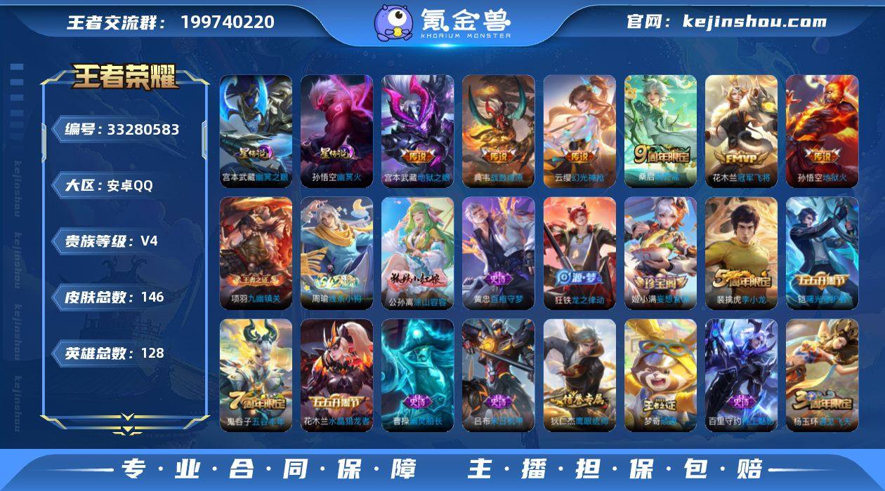 可换绑 【精品战力号·小国典韦1.33w·万战老夫子·金标廉颇苏烈·】4按键,2星传说,12王者印记,五级铭文130,可二次GT288,安卓Q-V4-146皮肤-6传说-35史诗【小国标】:小国标典韦【星元皮肤】:宫本武藏幽冥之眼,孙悟空幽冥火【传说皮肤】:云缨幻光神枪,桑启鸣野蒿,典韦战鼓燎原,花木兰冠军飞将,宫本武藏地狱之眼,孙悟空地狱火【限定皮肤】:蒙犽顽岩魄,姜子牙天穹之誓,狄仁杰阴阳师,狄仁杰万华元夜,项羽海滩派对,老夫子醍醐杖,兰陵王金庭之子,李元芳云中旅人,杨玉环遇见飞天,雅典娜黎明之约,鬼谷子原初探秘者,鬼谷子五谷丰年,梦奇顽趣,沈梦溪大漠名商,裴擒虎李小龙,鲁班大师探海日志,桑启海盐诗旅,艾琳女武神,阿古朵江河有灵,张良古海寻踪,蒙恬荣光圣徽,鬼谷子天穹祈灯,姬小满妄想食味,沈梦溪龙舞盛年,刘邦剑破天穹,程咬金群星魔术团,周瑜熔金海岸【赛季限定】:老夫子醍醐杖,鬼谷子原初探秘者,狄仁杰万华元夜,兰陵王金庭之子,沈梦溪大漠名商,李元芳云中旅人,桑启海盐诗旅,鲁班大师探海日志,张良古海寻踪,鬼谷子天穹祈灯,刘邦剑破天穹,姜子牙天穹之誓,东皇太一噬灭天穹,太乙真人谧流熔炉,钟馗虚灵犬护,甄姬逆浪荇歌,亚瑟荣...