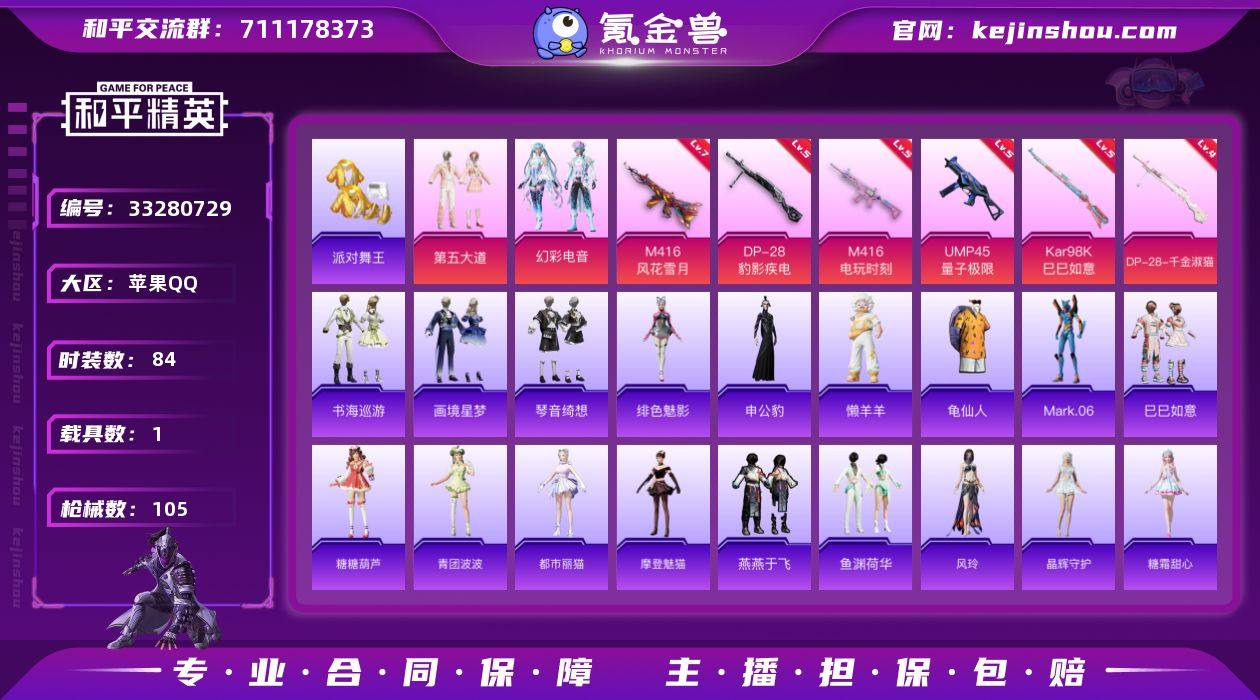 【955543】可二次 玩够能回血 精品和平小号 HP1519 苹果 手Q-2粉装-9特效枪-1载具-3粉色飞行器-38352热力值-6王牌印记-84套装-105枪皮 【热门品类】:套装-派对舞王,套装-龟仙人,角色-Mark.06 【粉色套装】:粉装-第五大道,粉装-幻彩电音 【粉色枪皮等级】:M416-风花雪月(七级),M416-电玩时刻(五级),UMP45-量子极限(五级),AKS-74U-森灵之息(五级),Kar98K-巳巳如意(五级),Mk14-福马献瑞(五级),DP-28-千金淑猫(四级),DP-28-豹影疾电(五级),信号枪-金乌曜日(三级) 【粉色载具】:暮色幽蹄 【粉色枪皮】:M416-风花雪月,M416-电玩时刻,UMP45-量子极限,AKS-74U-森灵之息,Kar98K-巳巳如意,Mk14-福马献瑞,DP-28-千金淑猫,DP-28-豹影疾电,信号枪-金乌曜日 【粉色飞行器】:炫彩糖果飞行器,冠军兔兔飞行器,曦光华影飞行器 【粉色降落伞】:星之彼岸降落伞,炫光之旅降落伞,圣堂之誓降落伞,精灵梦叶罗丽降落伞,初号机 觉醒Ver.降落伞,千金淑猫降落伞,盛世惊鸿降落伞,晶梦幻蝶降落伞,月下星之子降落伞,智耀战神降落伞,喜羊羊与灰太狼降落伞,炫彩糖果降落伞,霁蓝缠春降落伞,天马神君降落伞,霜月狼主降落伞 【稀有套装】:套装-龟仙人,套装-巳巳如...