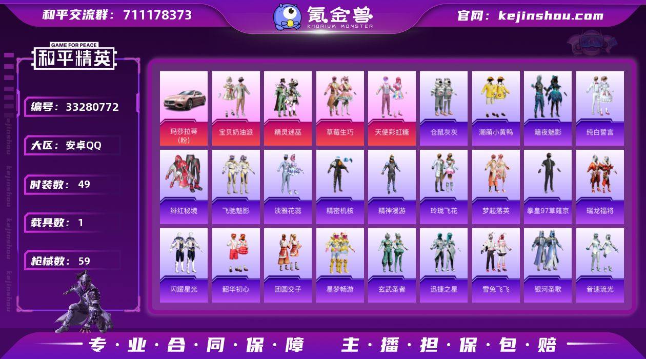 【和平精英】4粉装,3特效枪,1载具,历史最高段位:荣耀皇冠Ⅰ 王牌印记-1次 热力值:37365,101套装,115枪械,121装备,58战备;套装:套装-宝贝奶油派,套装-天使彩虹糖,套装-精灵迷巫,套装-草莓生巧,套装-红色运动,套装-骑行爱好者,套装-竞技名士,套装-猛禽,套装-游猎者,套装-长空猛禽,套装-竞技勇士朋克,套装-刚毅裁决者,套装-特战装甲,套装-战地菁英,套装-特殊使命,套装-灰色格斗者,套装-甜蜜告白,套装-潮流先锋,套装-滨海假日,套装-千禧之恋,套装-怒火燎原,套装-魅力单车,套装-耀眼新星,套装-雪山征服者,套装-夜莺强袭者,套装-风行保卫者,套装-沙漠兵团,套装-丛林猎人,套装-SS2特训,套装-派对绅士,套装-雪山精英,套装-传奇侦探,套装-极地朋克,套装-冰原奔狼,套装-绯红秘境,套装-甜蜜菠萝,套装-半糖蓝莓,套装-精密机核,套装-午夜朋克,套装-青涩时光,套装-滨海厨神,套装-特种空勤,套装-和平特警,套装-风暴特警,套装-SS3特训,套装-攀登者,套装-疯狂小兔子,套装-SS5特训,套装-圣诞大吉,套装-冰原使者,套装-凛冬战士,套装-北国孤狼,套装-SS6特训,套装-拳皇97草薙京,套装-炽焰拳师,套装-格斗专家,套装-仓鼠灰灰,套装-...