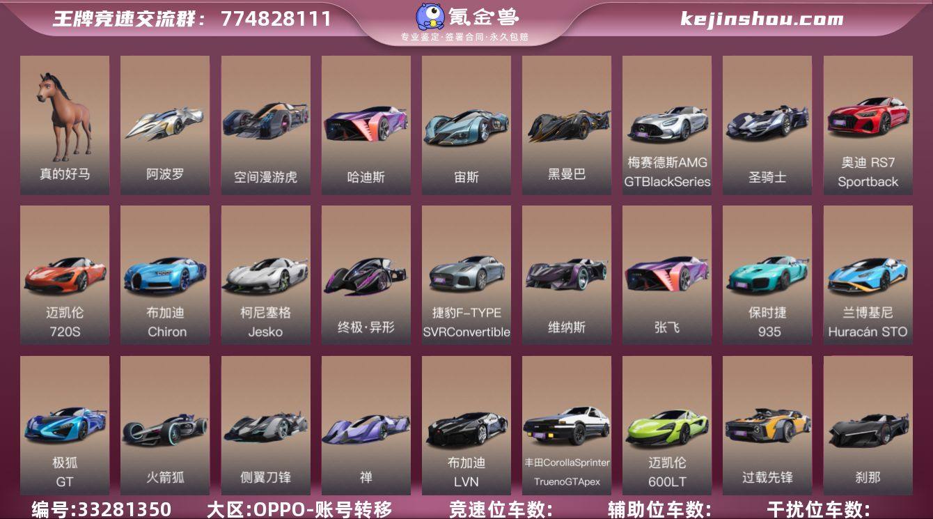 真的好马,阿波罗,哈迪斯,空间漫游虎,宙斯 黑曼巴,梅赛德斯-AMG GT Black Series,圣骑士,神剑号,迈凯伦 720S,布加迪 Chiron,柯尼塞格 Jesko,终极·异形,捷豹 F-TYPE SVR Convertible,维纳斯,张飞,保时捷 935,兰博基尼 Huracán STO,极狐 GT,火箭狐,侧翼刀锋,禅,布加迪 LVN,丰田 Corolla Sprinter Trueno GT,迈凯伦 600LT,过载先锋,刹那,保时捷 911 GT2 RS,记录官,迈凯伦 P1,福特 GT,梅赛德斯-AMG C63 S Coupe,蔚来 EP9 保时捷-Panamera-Turbo-S,福特-Mustang,复仇者,机械咆哮虎,寒霜冰魄,超音速,逐浪,洛基,路虎卫士,饿龙传说,绿箭骑士,沙滩漫步者,道奇 Challenger SRT 392,坦克 300,魔鬼鱼,干扰者,开拓铁铲,泰坦,法拉第,燃烧太阳 坚盾,宝马-M4-CSL,摇尾萌萌虎,梅赛德斯-AMG G 63,幻蝶,月宫舞灵,先驱者,催化剂,玉麒麟,逮虾货运,猫眠梦,星际探路者,奥迪 TT RS,平行巡洋舰,以太,道奇 Charger SRT Hellcat,风神,阿斯顿马丁 Vanquish,比亚迪 汉,大众ID.R 卖家说:贵族9退游号,多时装