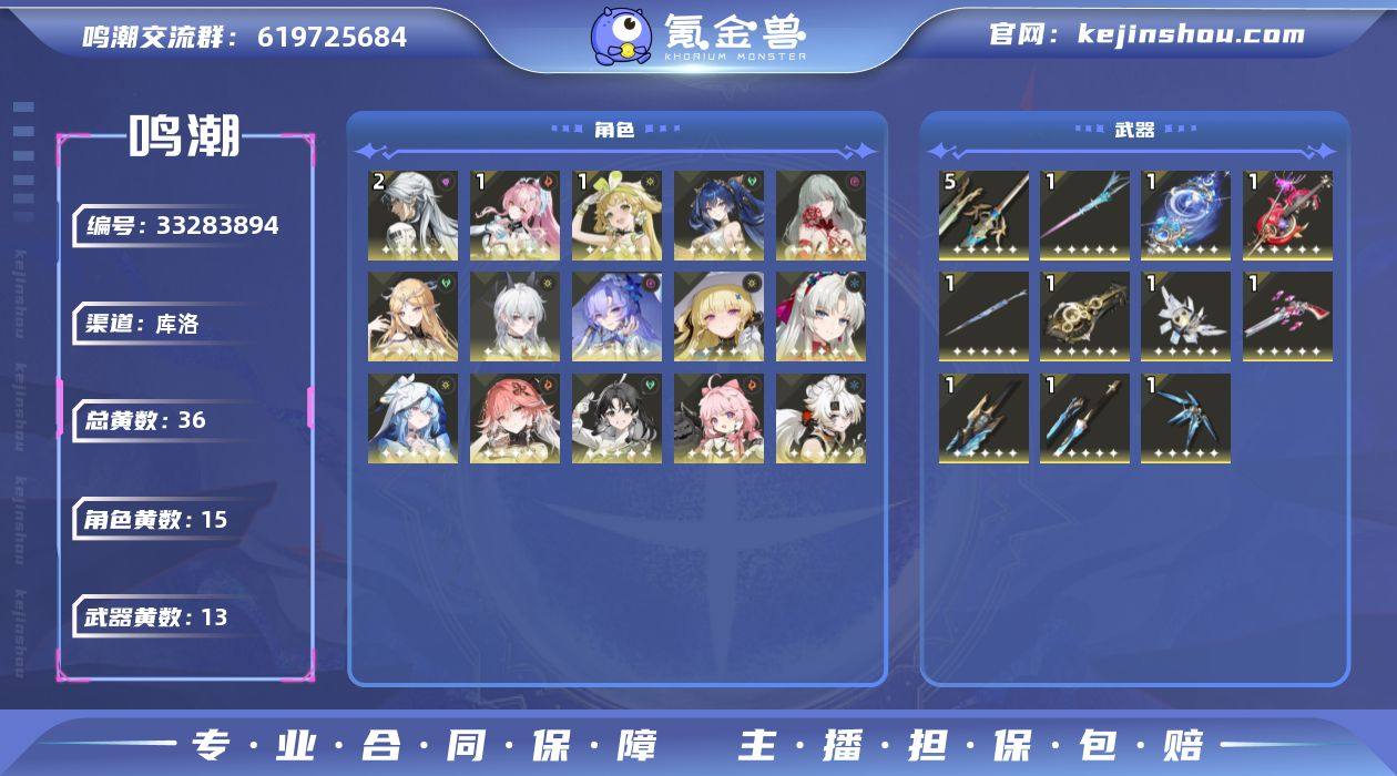 男/女主: 男主 总黄数: 36 联觉等级: 76 拥有五星共鸣者: 鉴心,卡卡罗,安可,维里奈,凌阳,长离,守岸人,珂莱塔,菲比,坎特蕾拉,赞妮,卡提希娅,弗洛洛,尤诺,爱弥斯 2鸣五星共鸣者: 2鸣卡卡罗 1鸣五星共鸣者: 1鸣维里奈,1鸣爱弥斯 0鸣五星共鸣者: 0鸣鉴心,0鸣安可,0鸣凌阳,0鸣长离,0鸣守岸人,0鸣珂莱塔,0鸣菲比,0鸣坎特蕾拉,0鸣赞妮,0鸣卡提希娅,0鸣弗洛洛,0鸣尤诺 拥有五星武器: 浩境粼光,千古洑流,漪澜浮录,死与舞,和光回唱,血誓盟约,焰光裁定,不屈命定之冠,幽冥的忘忧章,万物持存的注释,永远的启明星 5鸣五星武器: 5鸣血誓盟约 1鸣五星武器: 1鸣浩境粼光,1鸣千古洑流,1鸣漪澜浮录,1鸣死与舞,1鸣和光回唱,1鸣焰光裁定,1鸣不屈命定之冠,1鸣幽冥的忘忧章,1鸣万物持存的注释,1鸣永远的启明星 亮点: 【MC250】76级/36黄/男主/15个五星角色/13个五星武器未绑定,爱弥斯,尤诺,弗洛洛,卡提希娅,赞妮,坎特蕾拉,菲比,珂莱塔,守岸人,长离,维里奈,鉴心,卡卡罗,安可,凌阳,永远的启明星,万物持存的注释,幽冥的忘忧章,不屈命定之冠,焰光裁定,血誓盟约,和光回唱,死与舞,浩境粼光,千古洑流,漪澜浮录,2命卡卡罗,1命爱弥斯,1命维里奈,0命尤诺,0命弗洛洛,0命卡提希娅,0命赞妮,0命坎特蕾拉,0命菲比,0命...