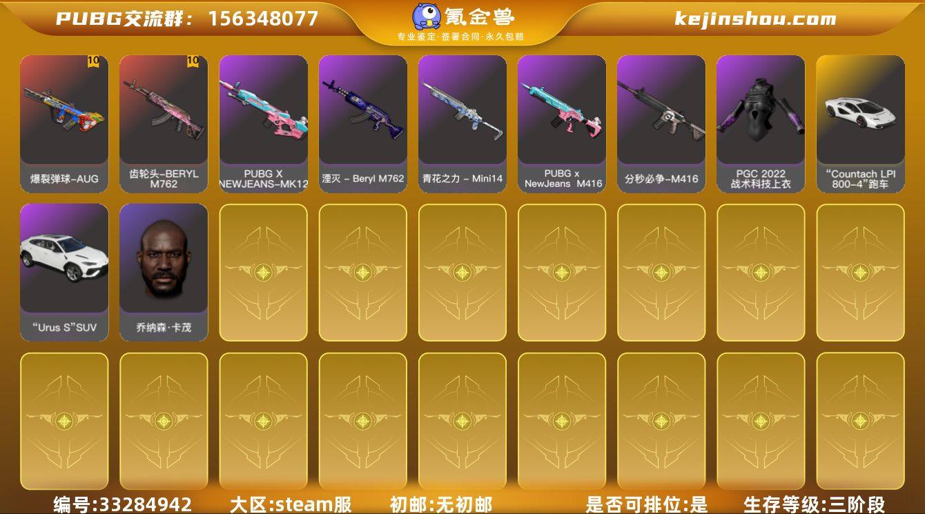 GJD13788 生存500级可排位/10级齿轮头-BERYLM762/10级爆裂弹球-AUG/寒蚀-MP5K(紫色配红色)/最后的小夜曲-M24(蓝黑色)/金面具/康萨斯发带/萨芬裤/卡翠娜面容/Pigff战术突击夹克/白熊鞋/黑绷带手套/疯狂科学电磁背包/兰博基尼跑车/兰博基尼suv/布加迪普通版/保时捷(4门吉普)/黄色烟枪/武器神龛/ 0BFGXV号 无排名, 生存等级1100, 名誉等级2, 金标数量2, 图纸10, 聚合物8466, 枪皮数量197, [成长型] 齿轮头 - Beryl M762[10级], [成长型] 爆裂弹球 - AUG[10级], “Cayenne Turbo GT”SUV, “Chiron” 跑车, “Countach LPI 800-4” 跑车